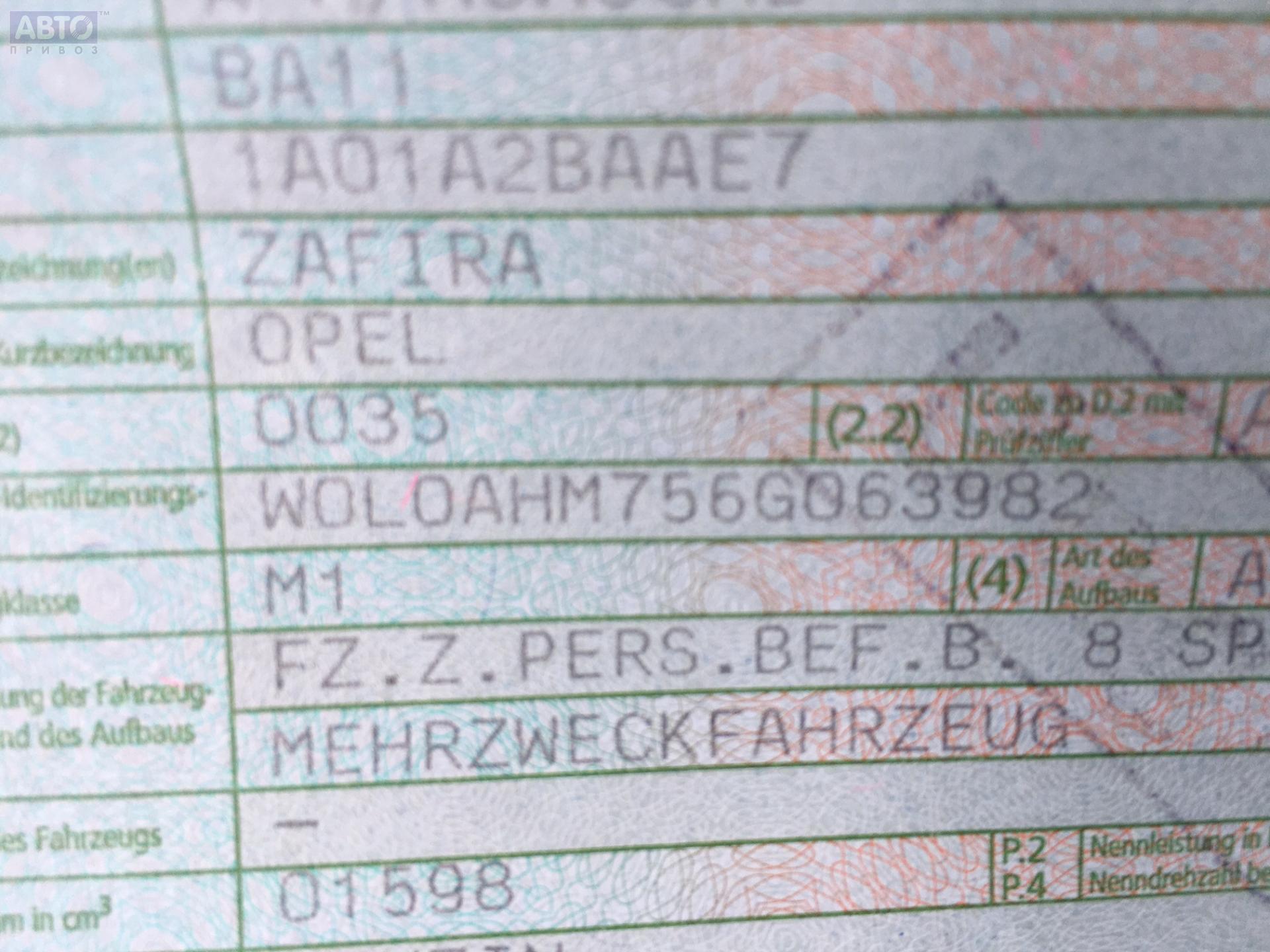 | Марка / Модель / Год: | Opel Zafira B (2004-2014) 2006 |