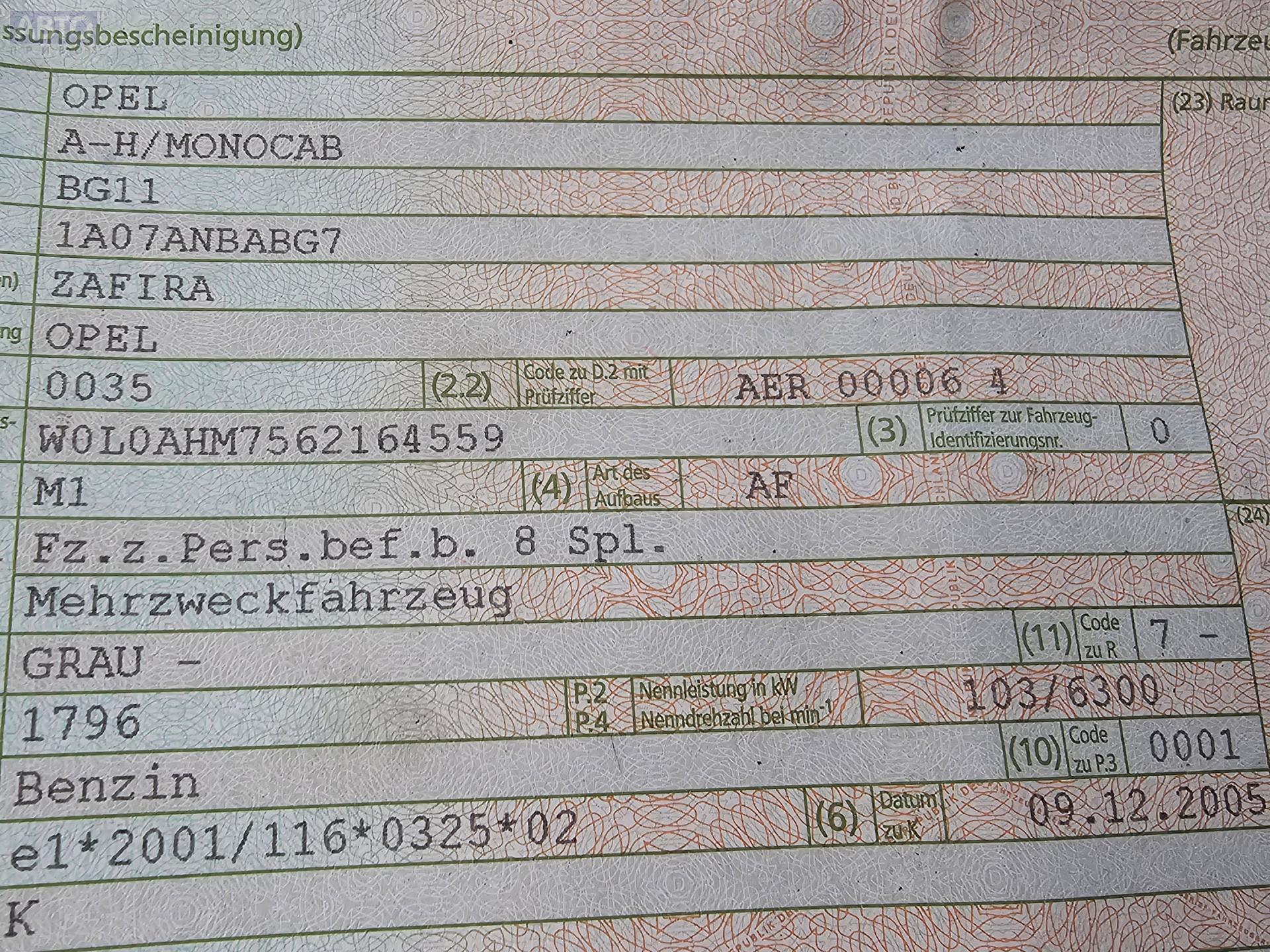 | Марка / Модель / Год: | Opel Zafira B (2004-2014) 2006 |