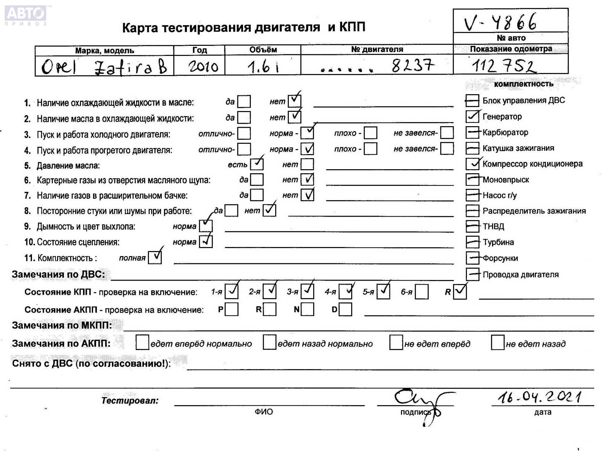 | Марка / Модель / Год: | Opel Zafira B (2004-2014) 2010 |
