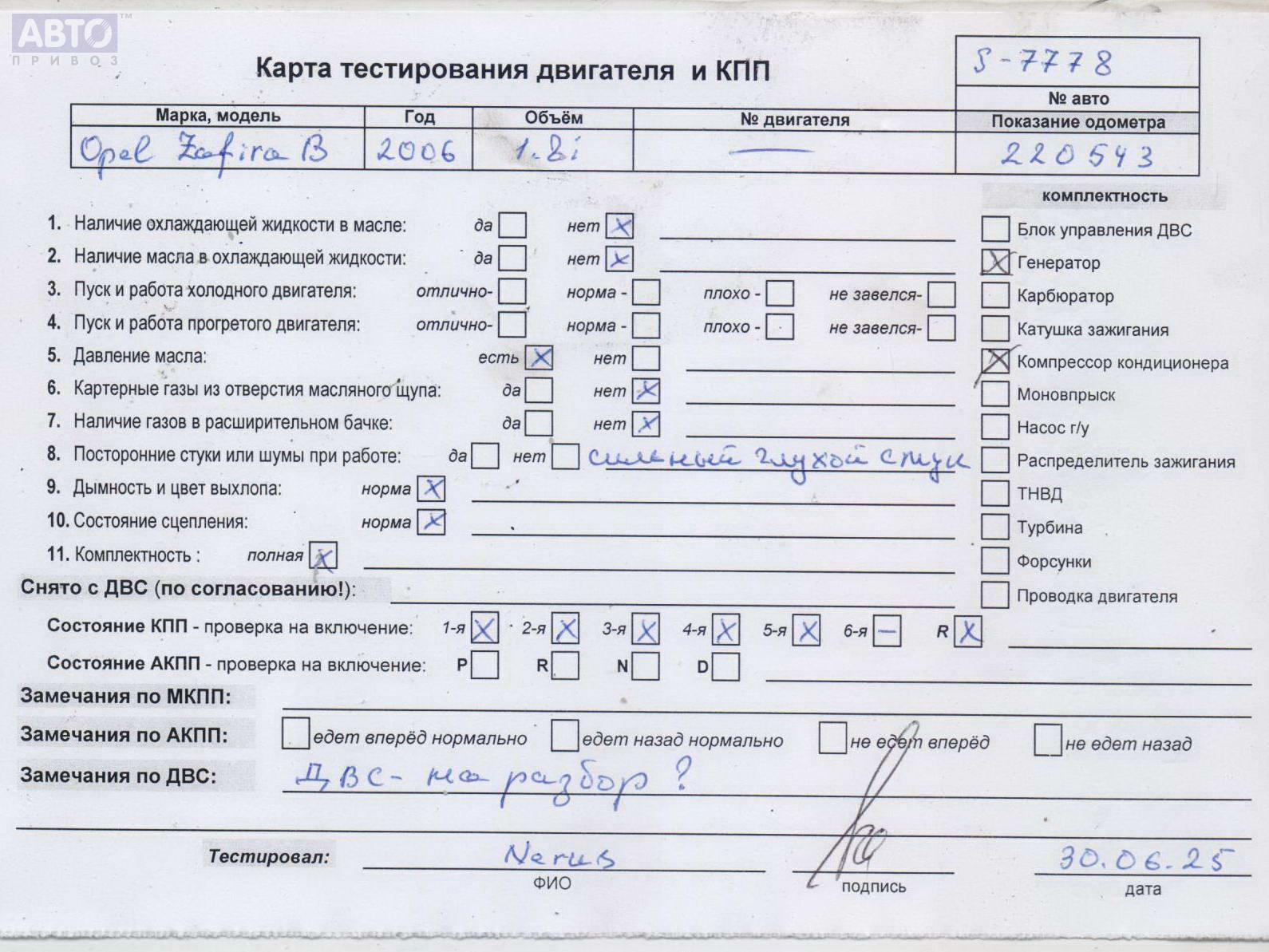 | Марка / Модель / Год: | Opel Zafira B (2004-2014) 2006 |