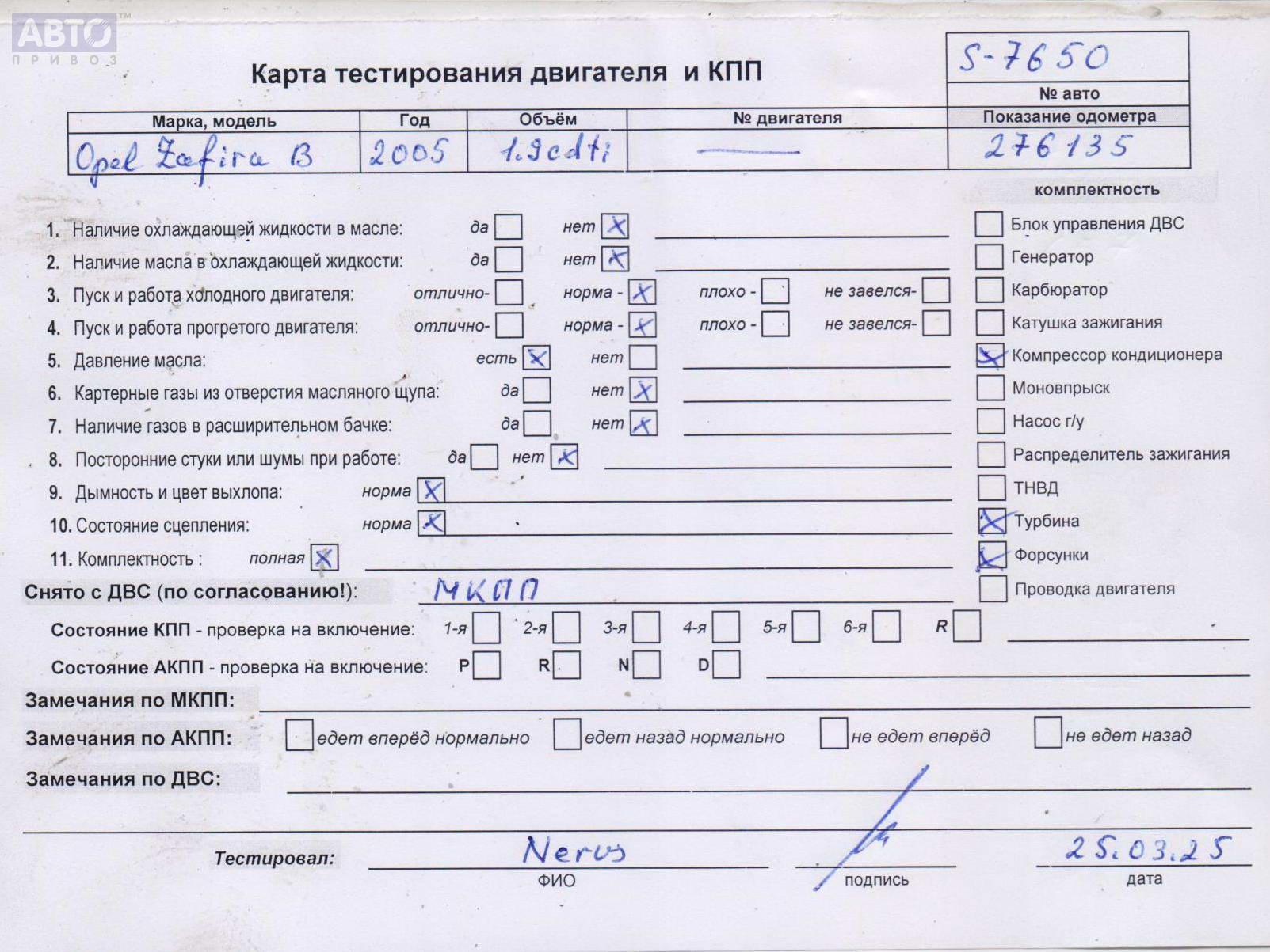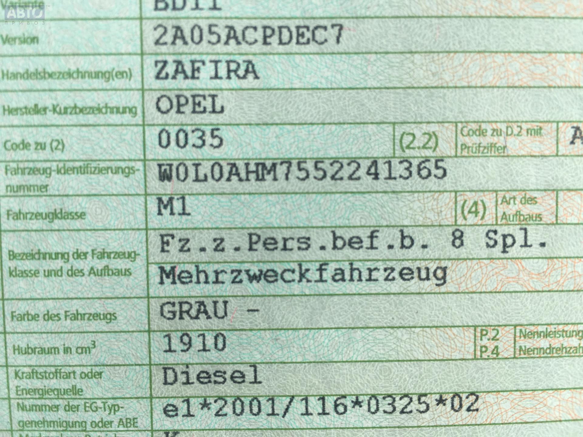 | Марка / Модель / Год: | Opel Zafira B (2004-2014) 2005 |