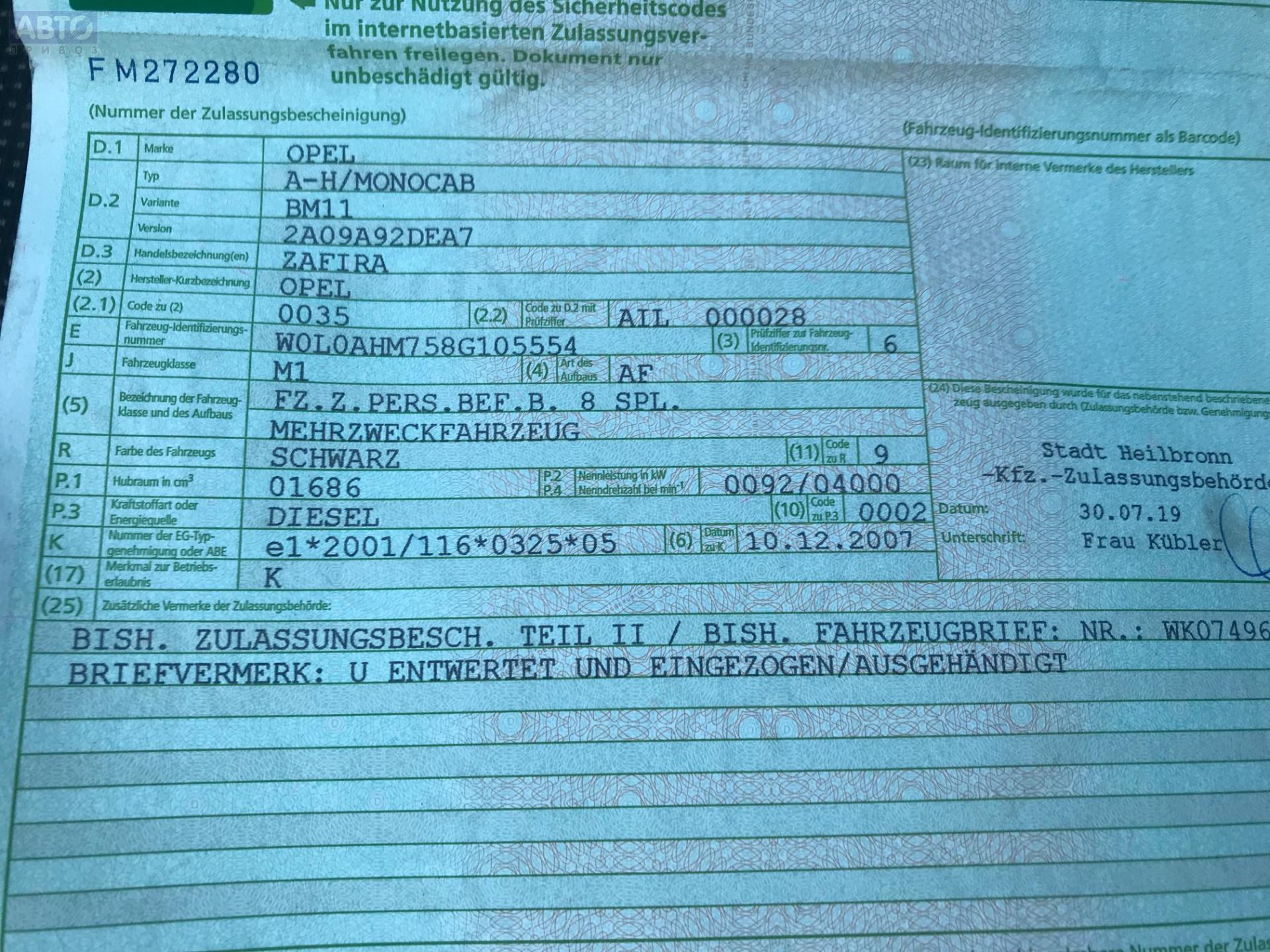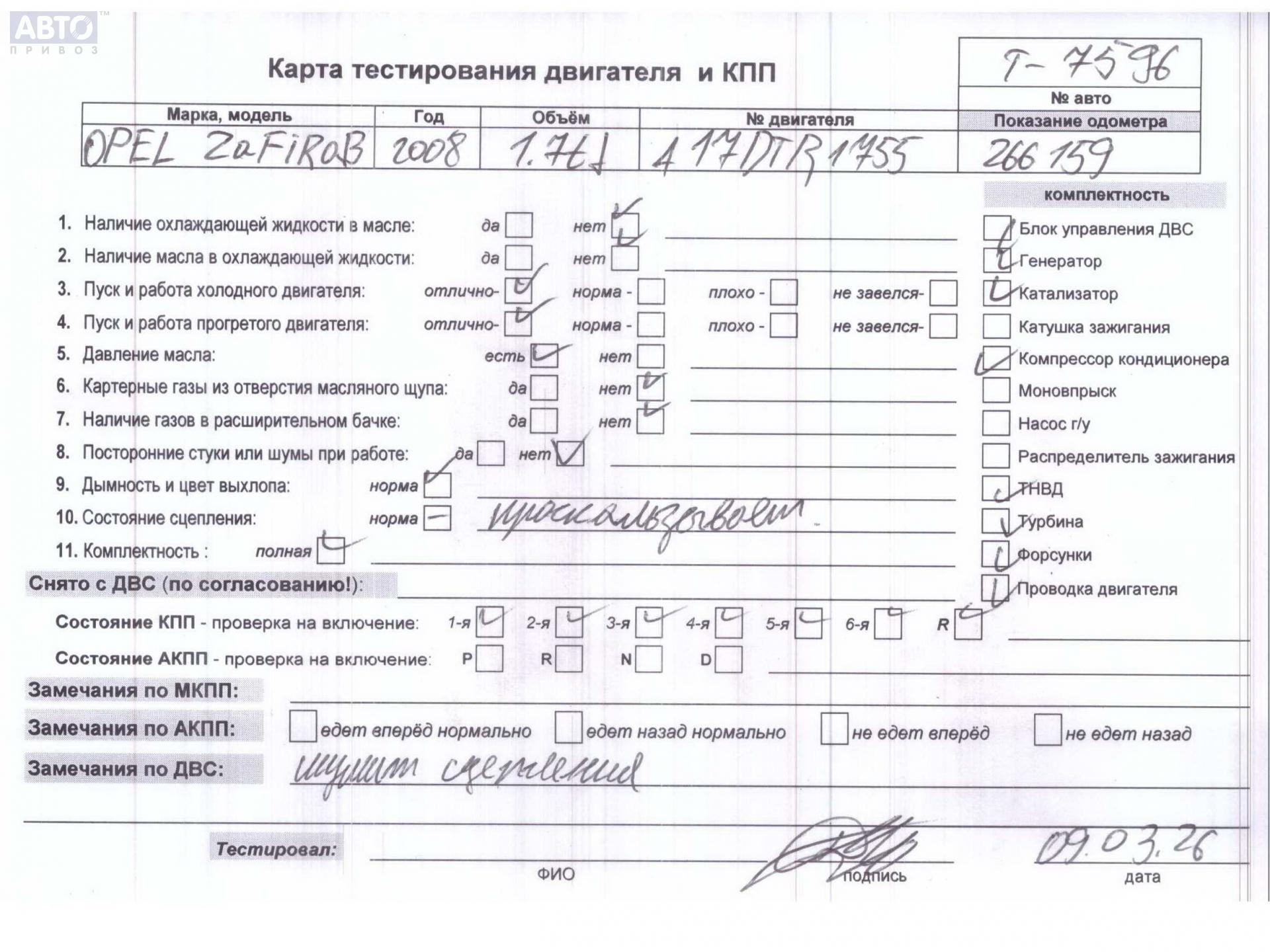 | Марка / Модель / Год: | Opel Zafira B (2004-2014) 2008 |