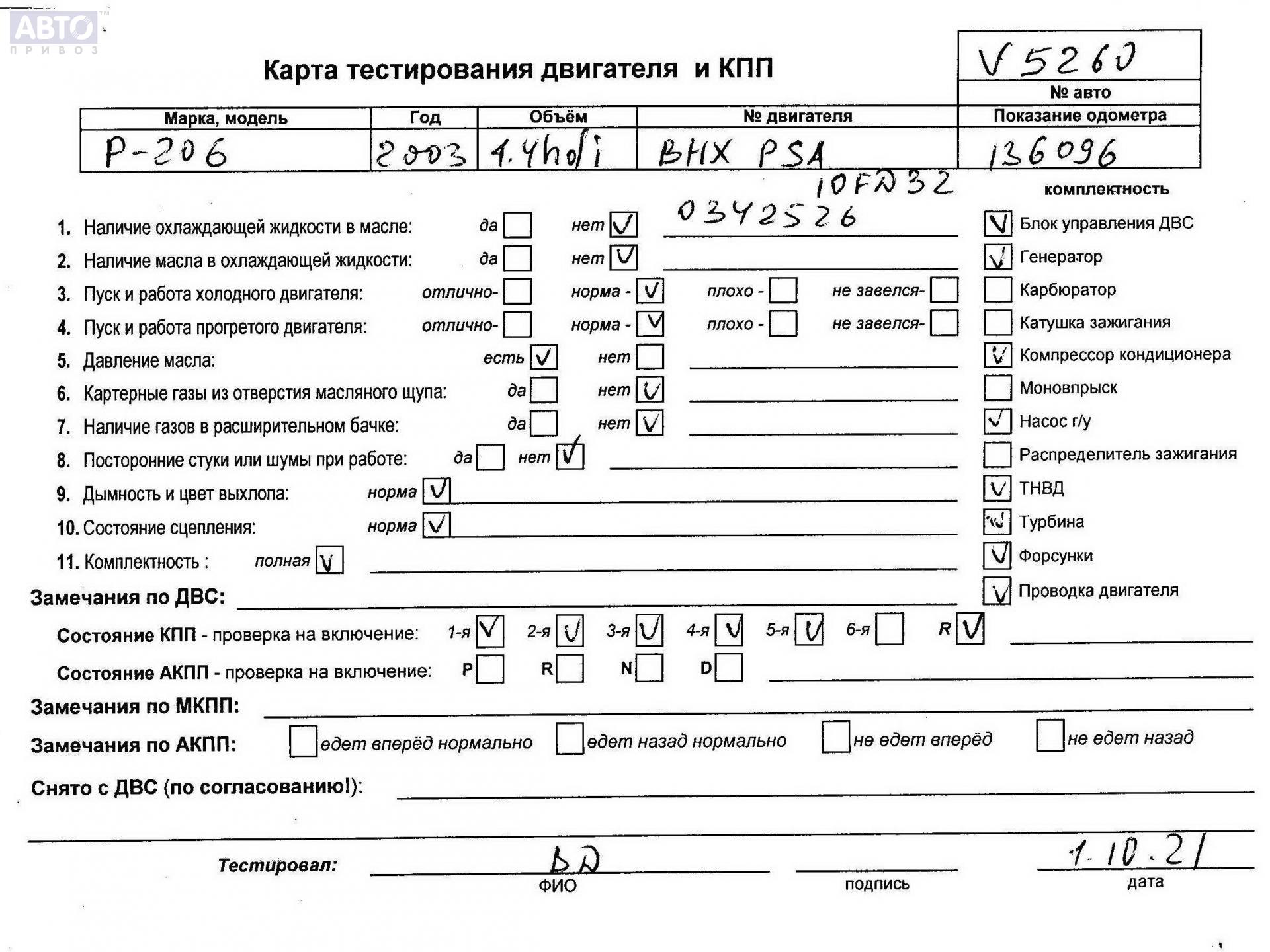 | Марка / Модель / Год: | Peugeot 206 2003 |