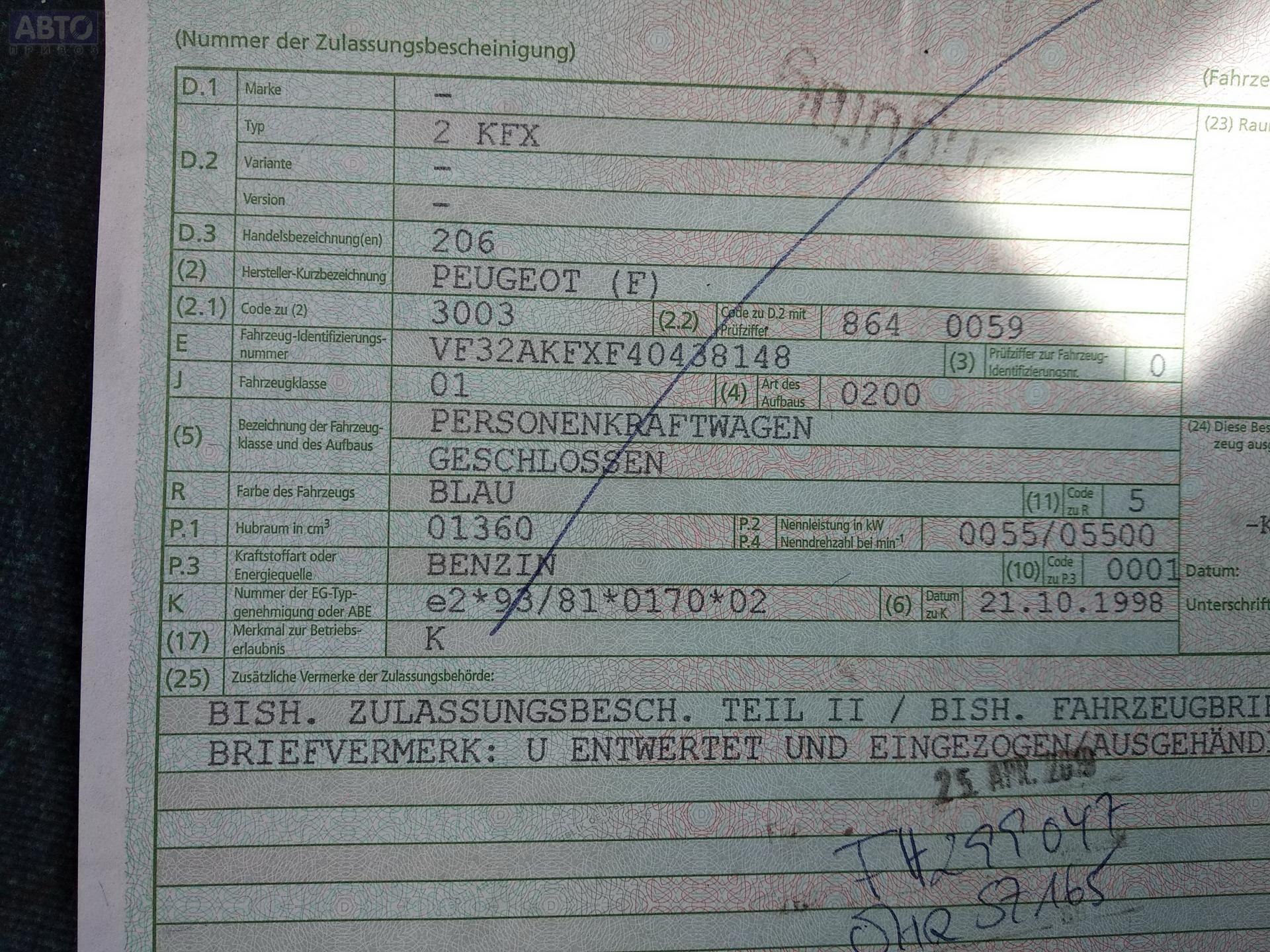 | Марка / Модель / Год: | Peugeot 206 1999 |