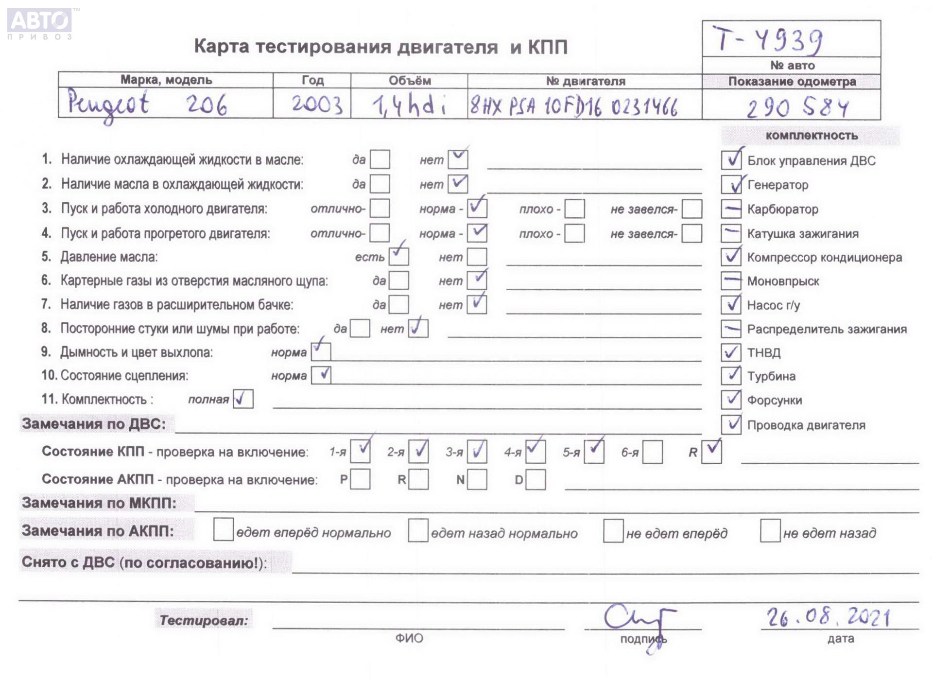 | Марка / Модель / Год: | Peugeot 206 2003 |