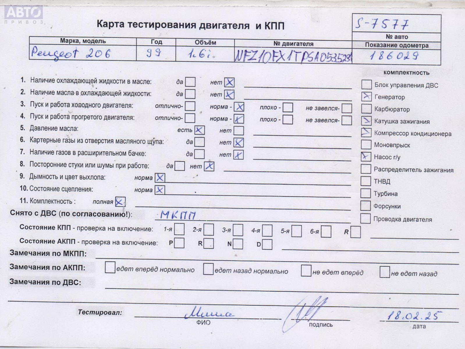 | Марка / Модель / Год: | Peugeot 206 1999 |