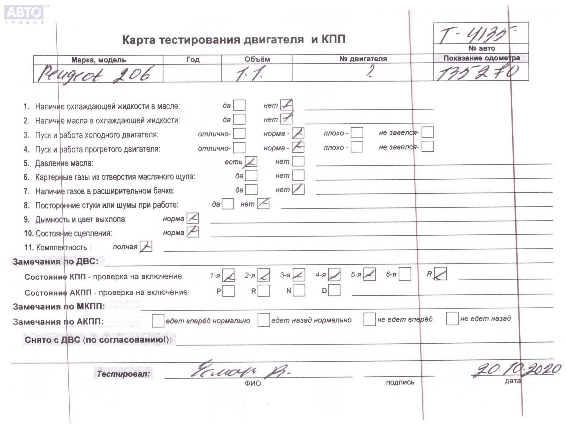| Марка / Модель / Год: | Peugeot 206 2001 |