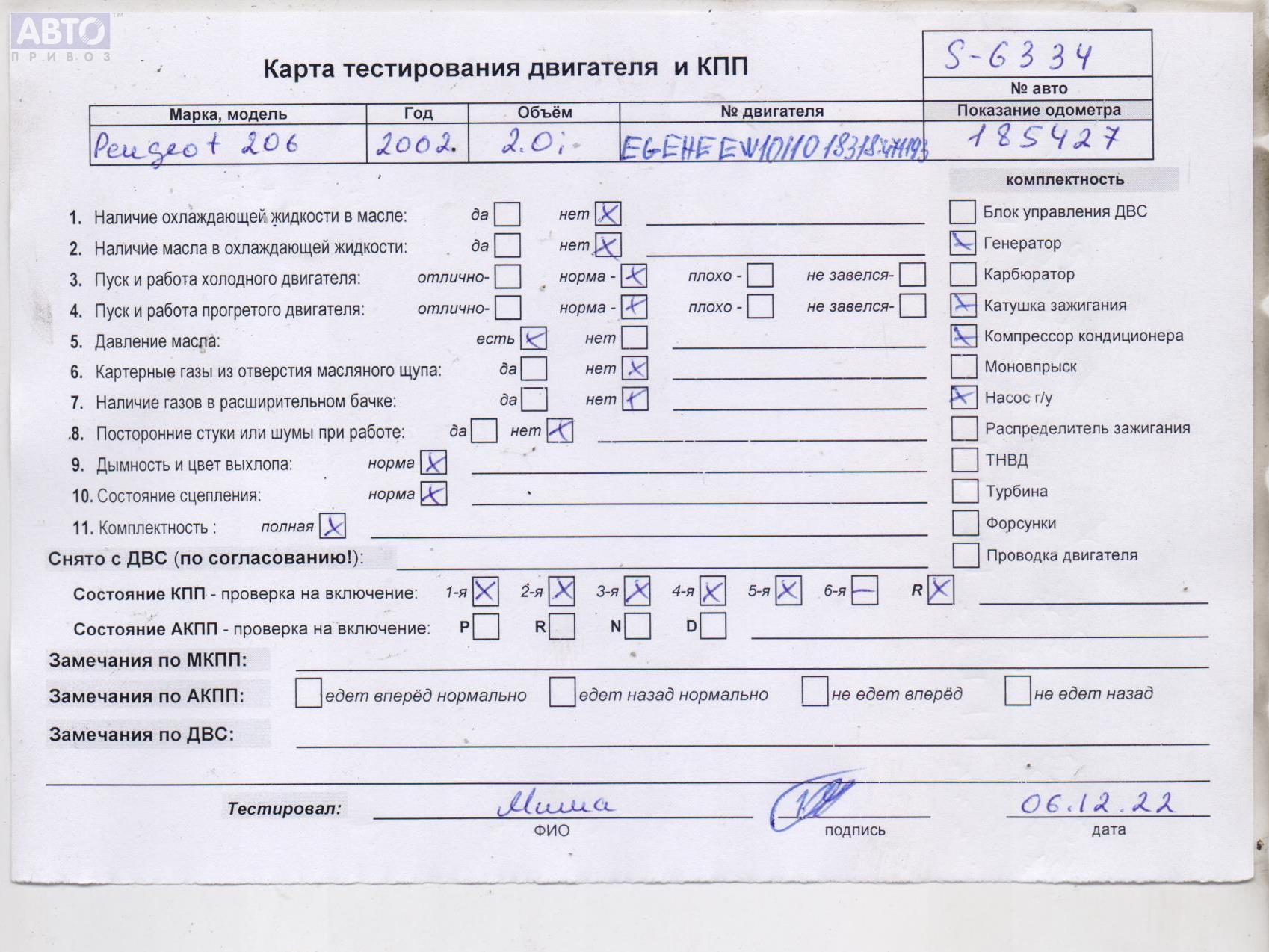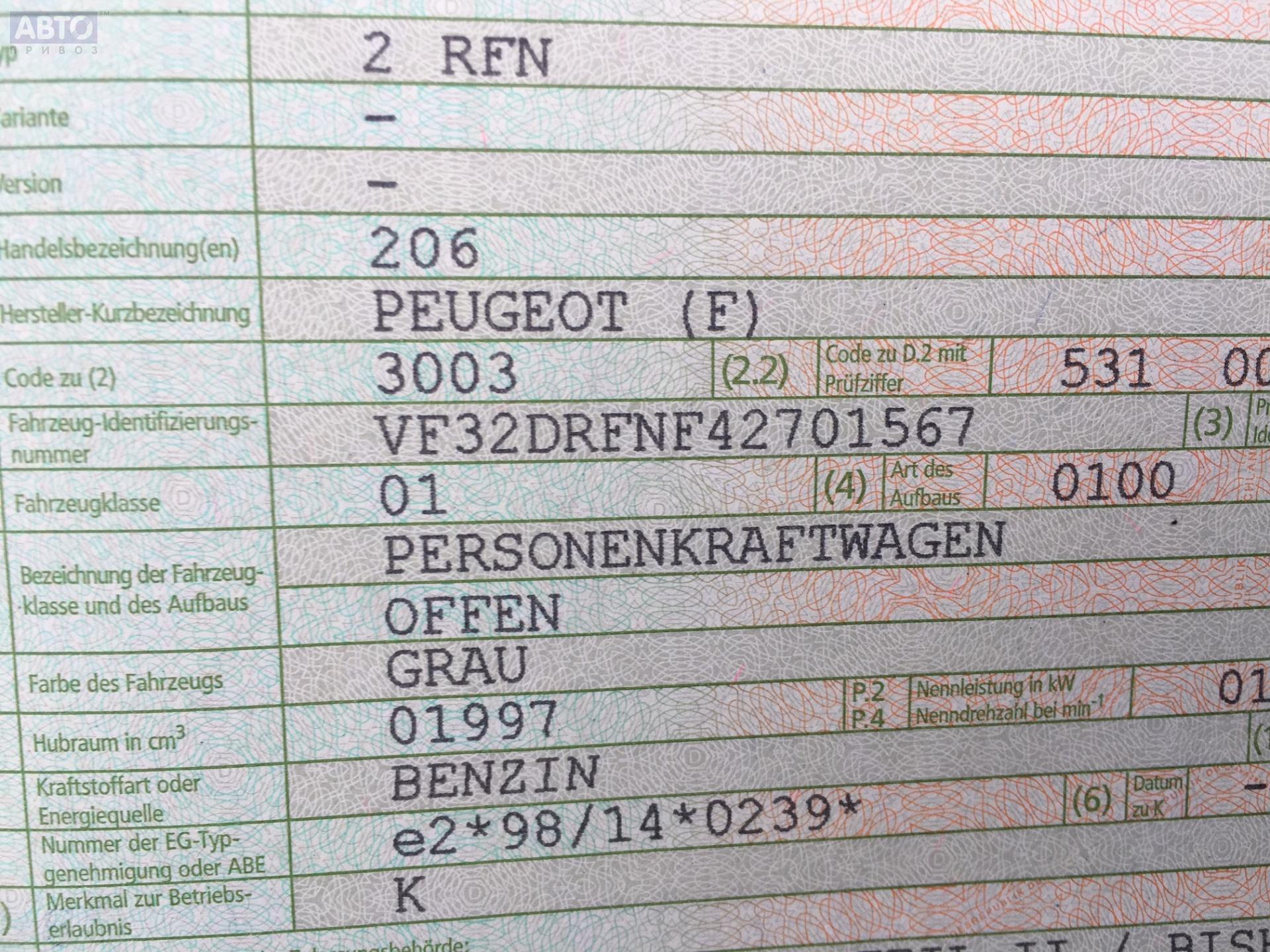| Марка / Модель / Год: | Peugeot 206 2002 |
