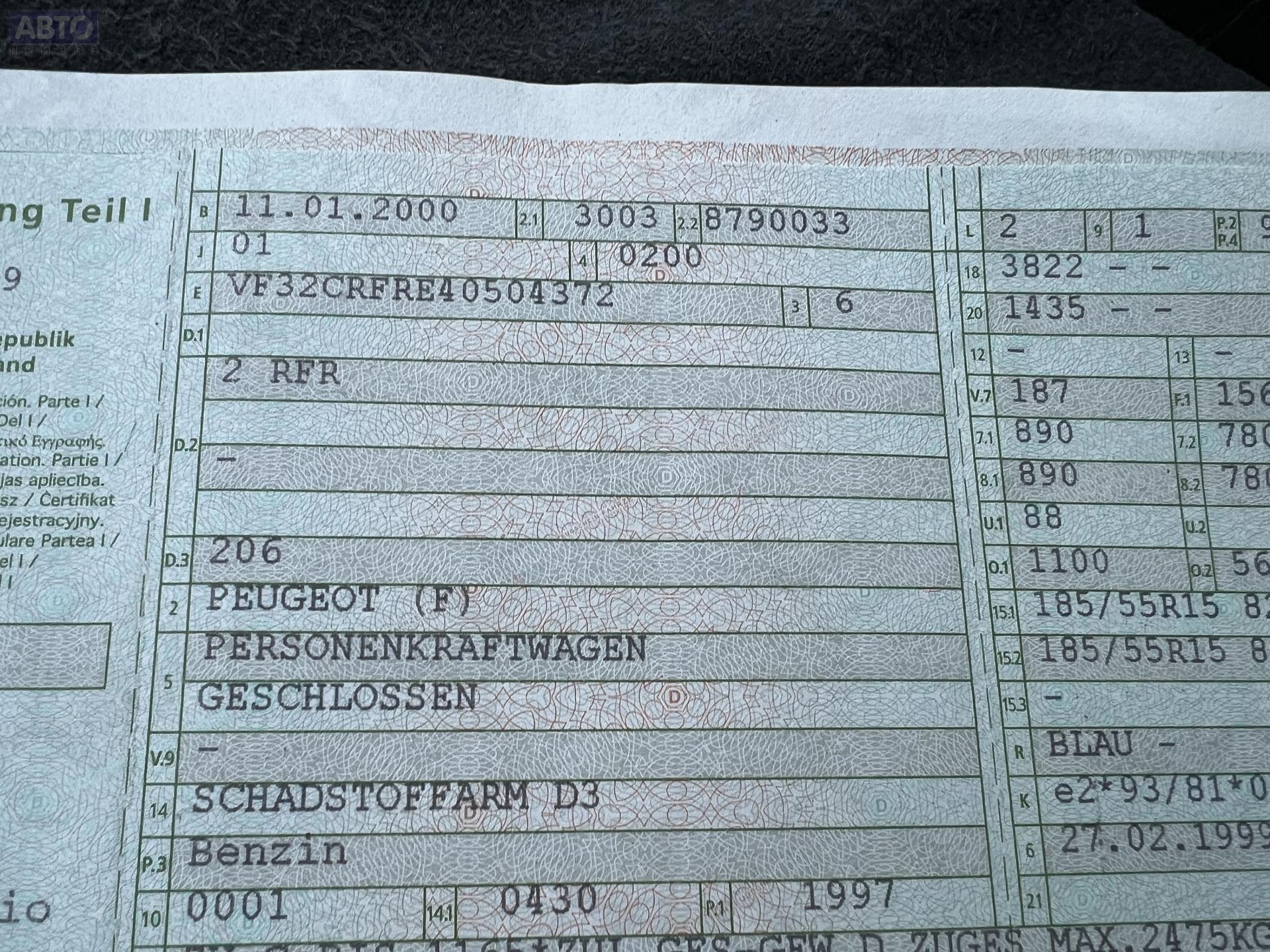 | Марка / Модель / Год: | Peugeot 206 1999 |