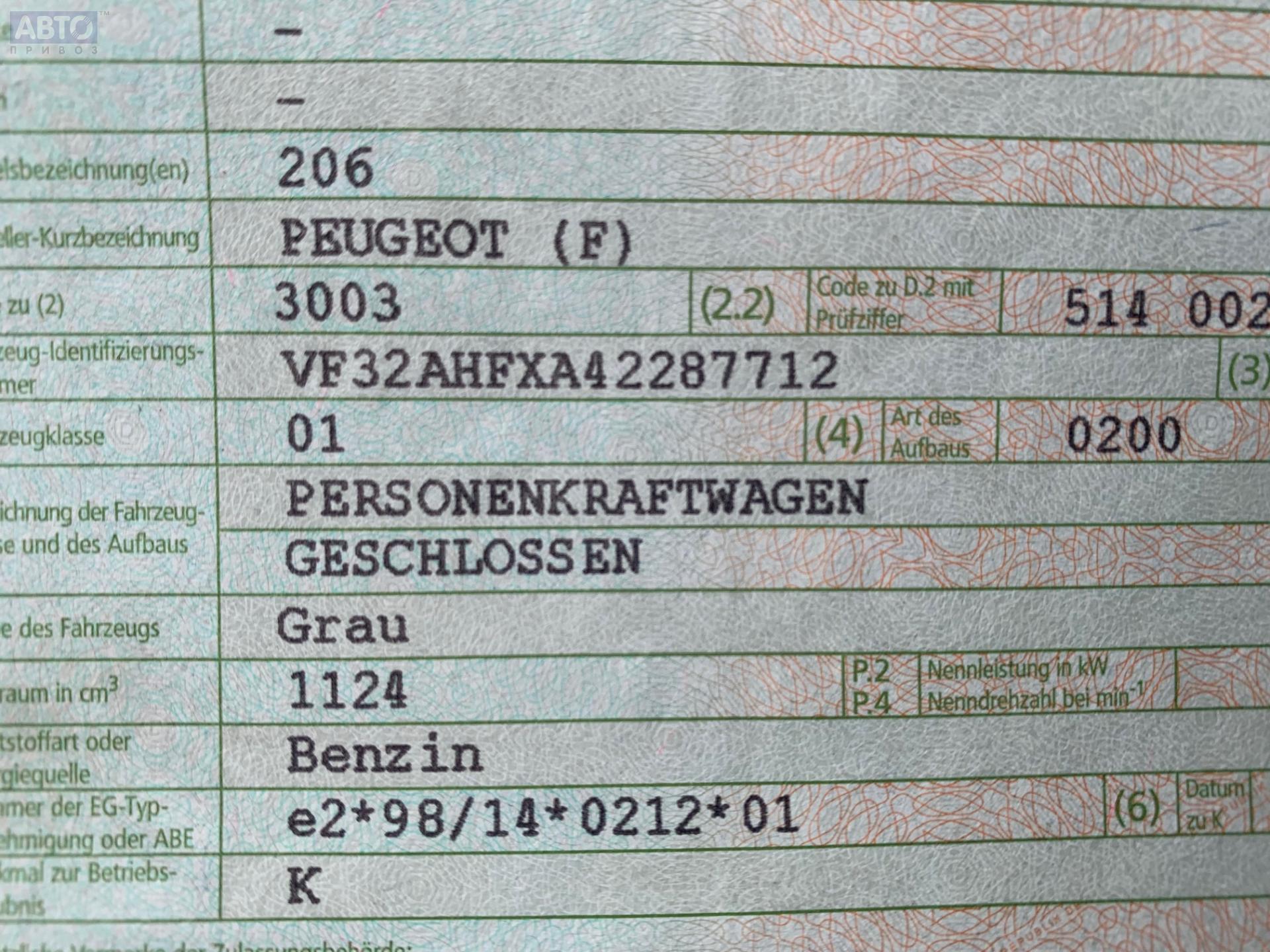 | Марка / Модель / Год: | Peugeot 206 2002 |