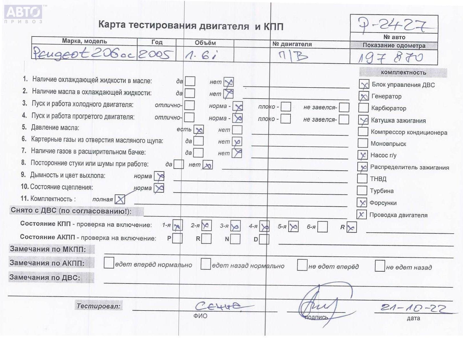 | Марка / Модель / Год: | Peugeot 206 2005 |