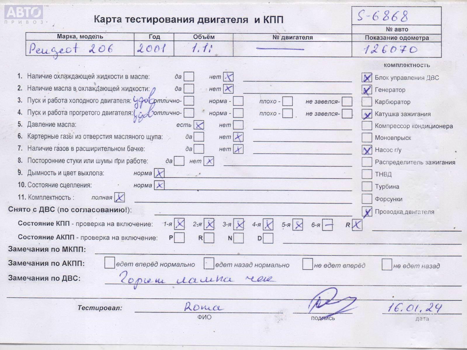 | Марка / Модель / Год: | Peugeot 206 2001 |