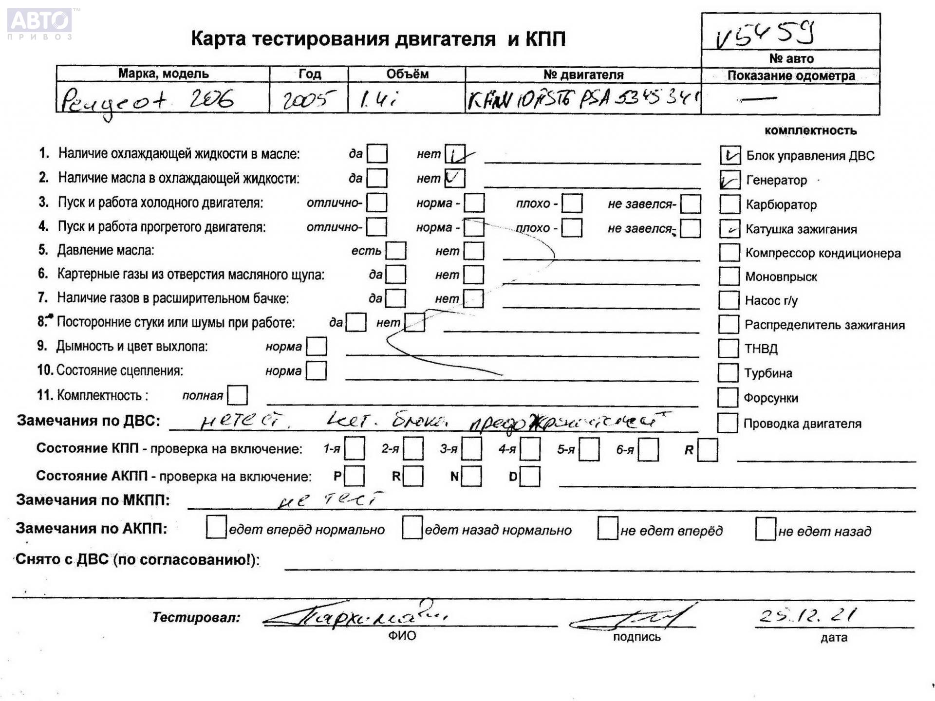 | Марка / Модель / Год: | Peugeot 206 2005 |