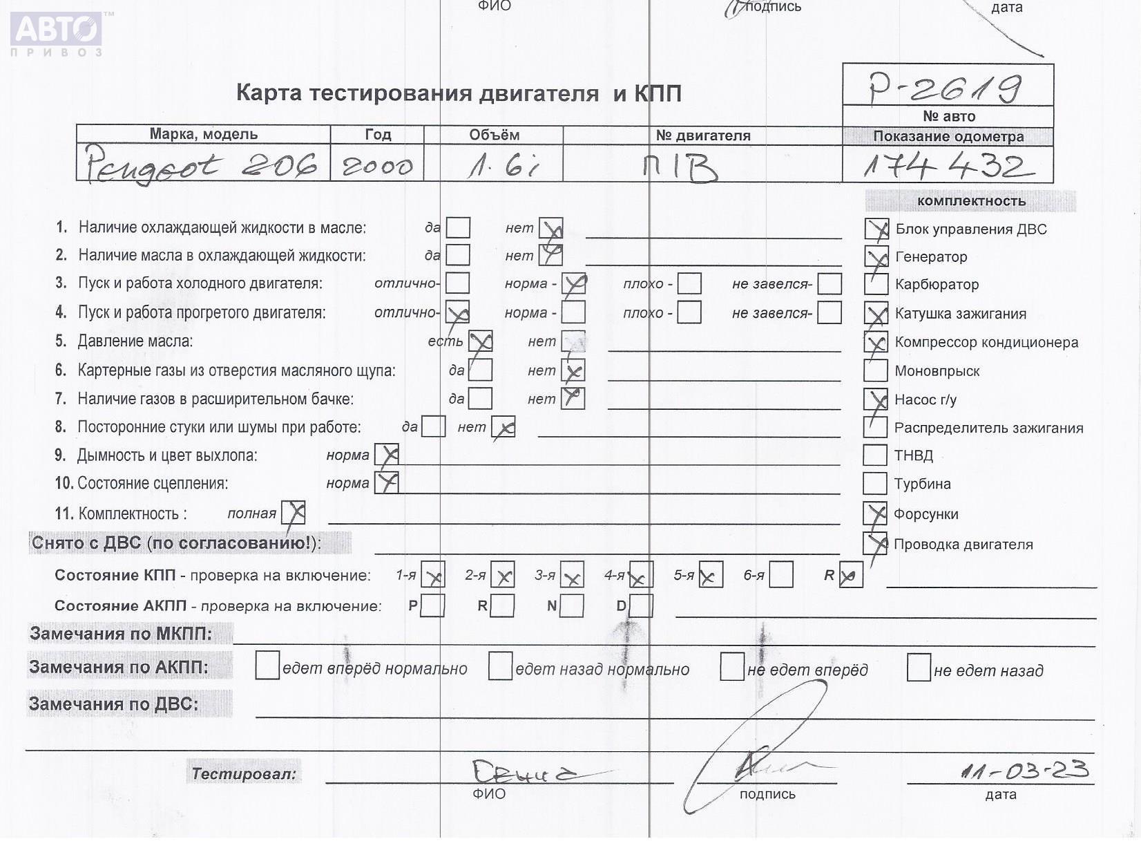 | Марка / Модель / Год: | Peugeot 206 2000 |
