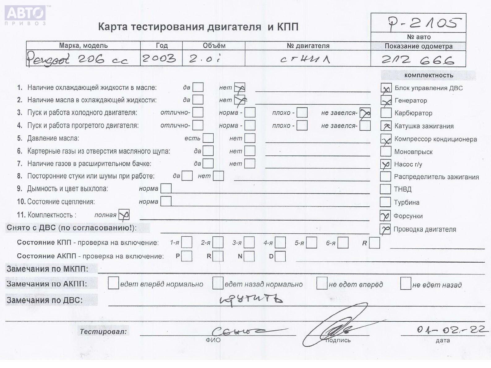 | Марка / Модель / Год: | Peugeot 206 2003 |
