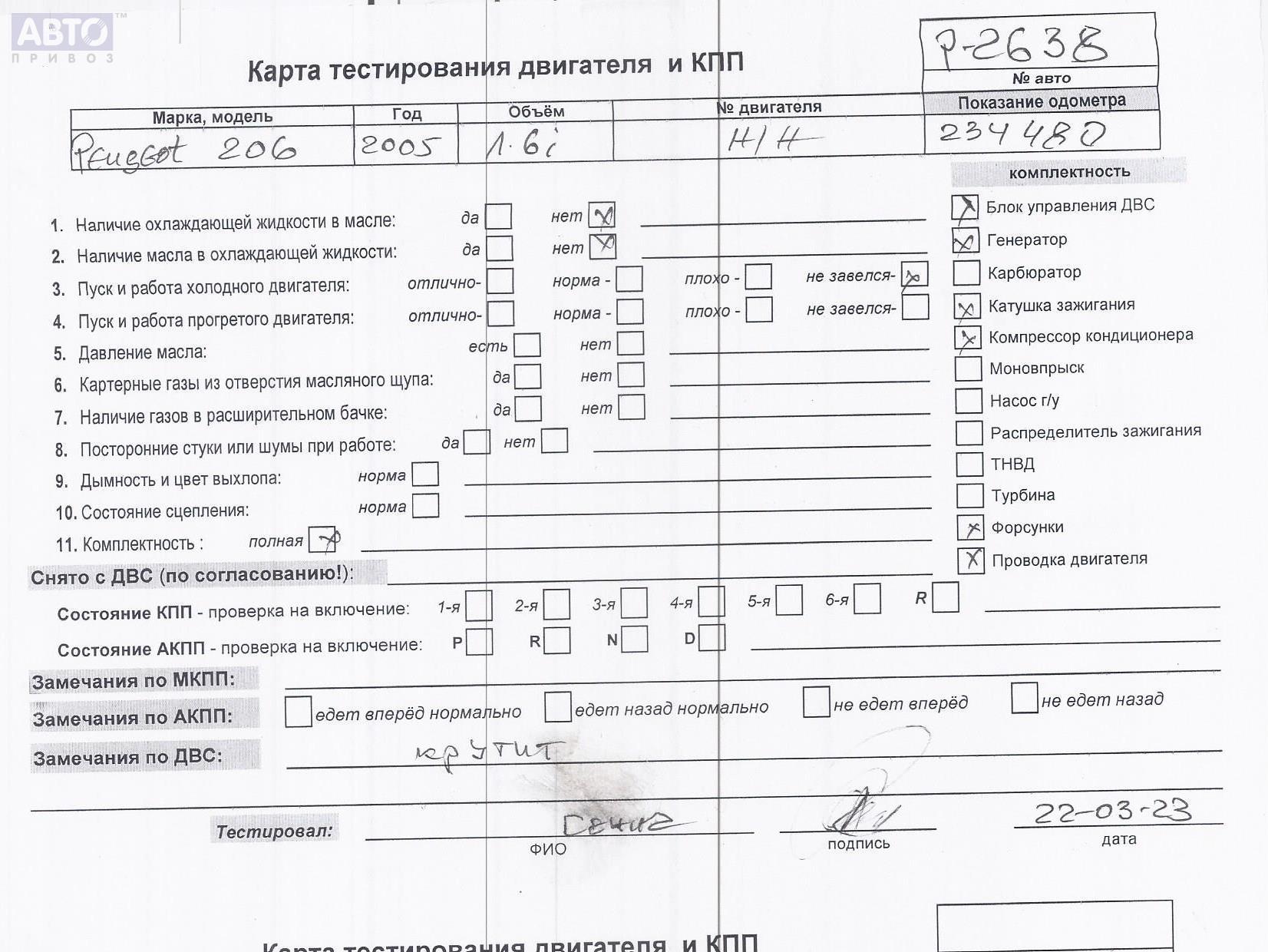 | Марка / Модель / Год: | Peugeot 206 2005 |