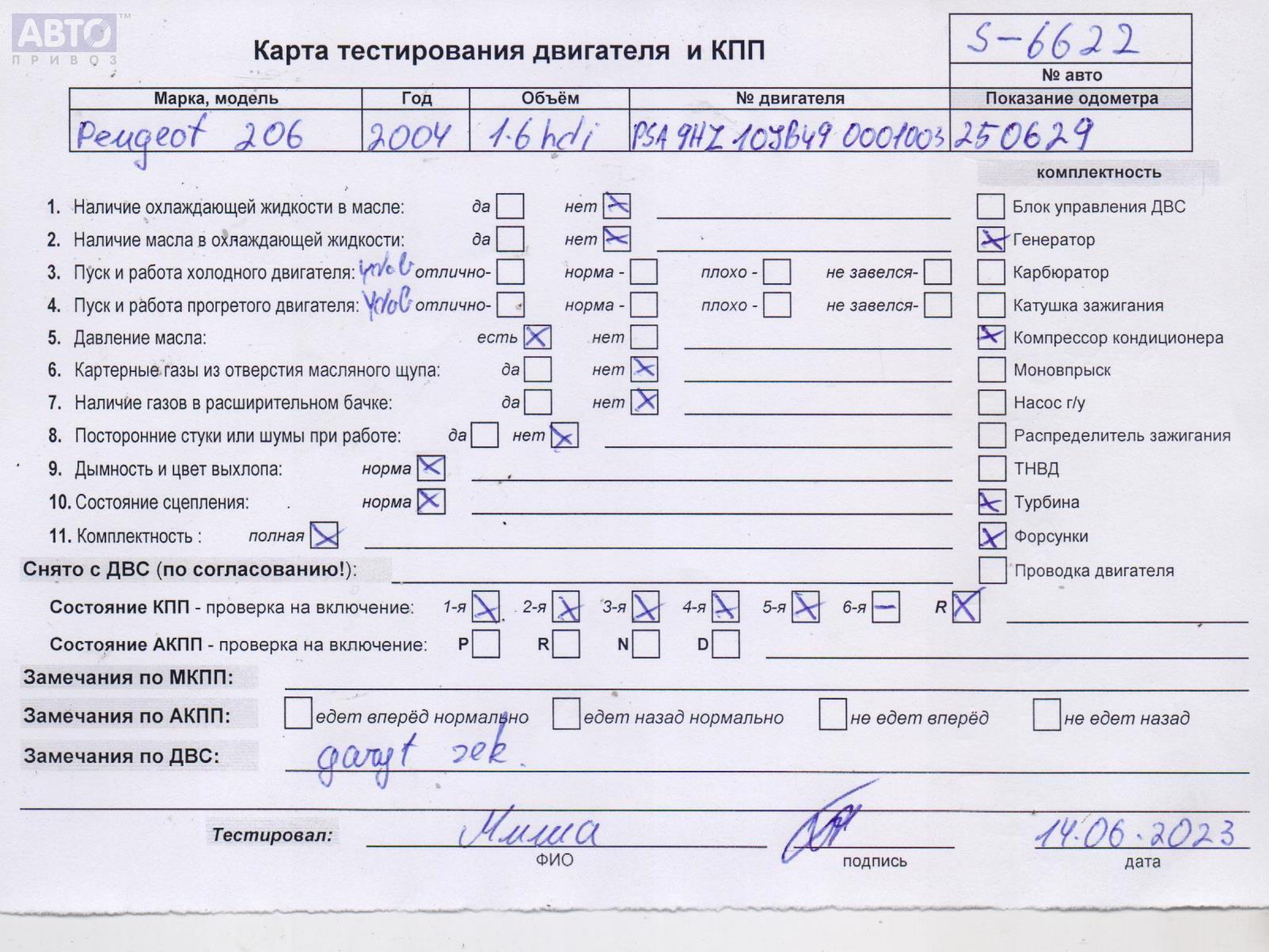 | Марка / Модель / Год: | Peugeot 206 2004 |