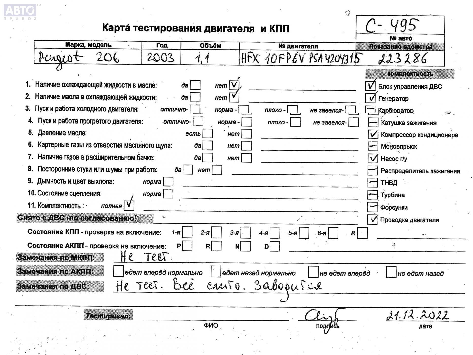 | Марка / Модель / Год: | Peugeot 206 2003 |