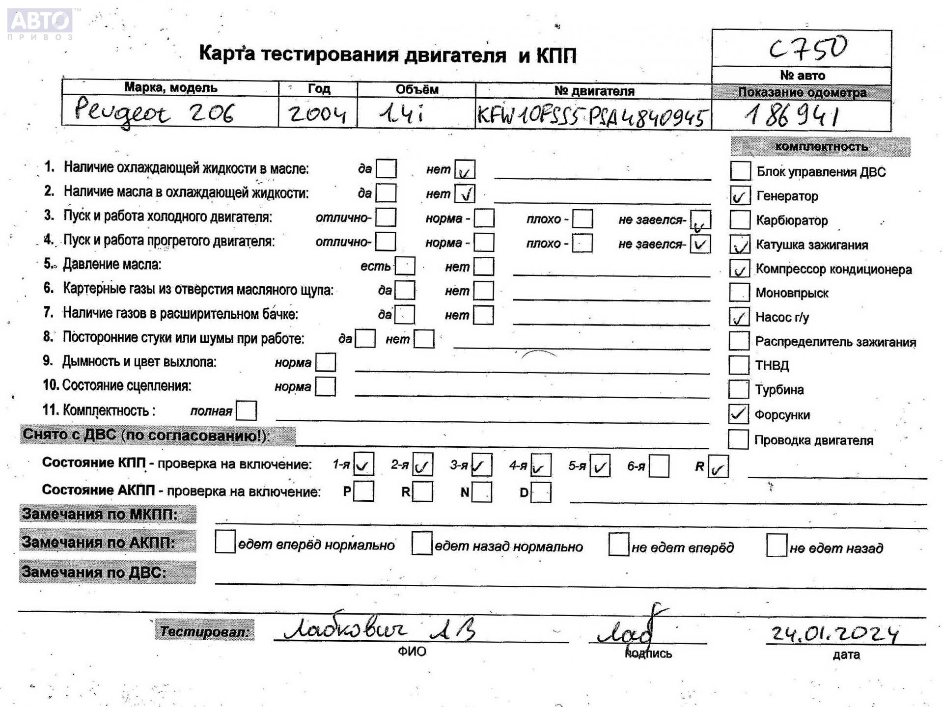 | Марка / Модель / Год: | Peugeot 206 2004 |