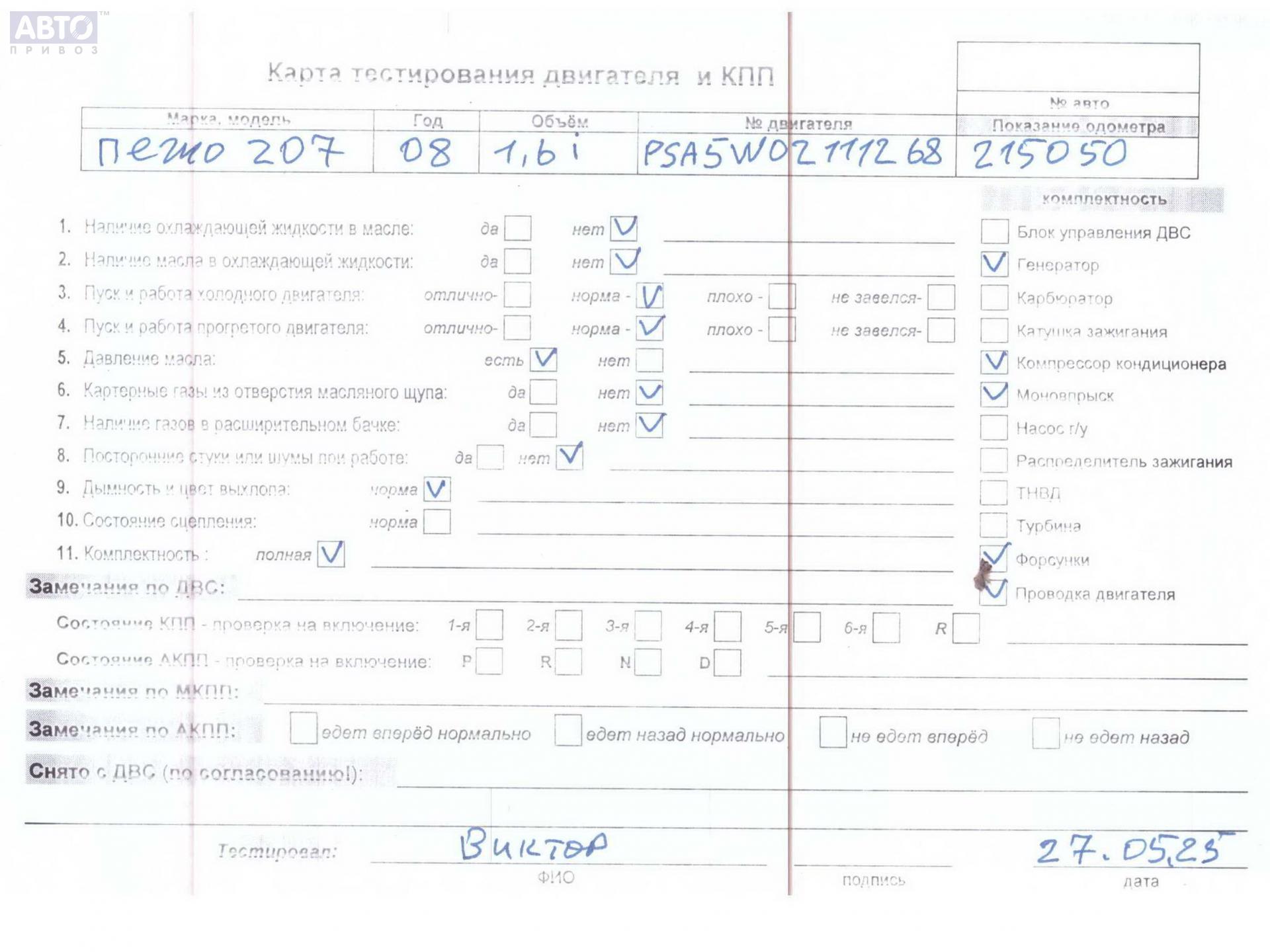 | Марка / Модель / Год: | Peugeot 207 2008 |