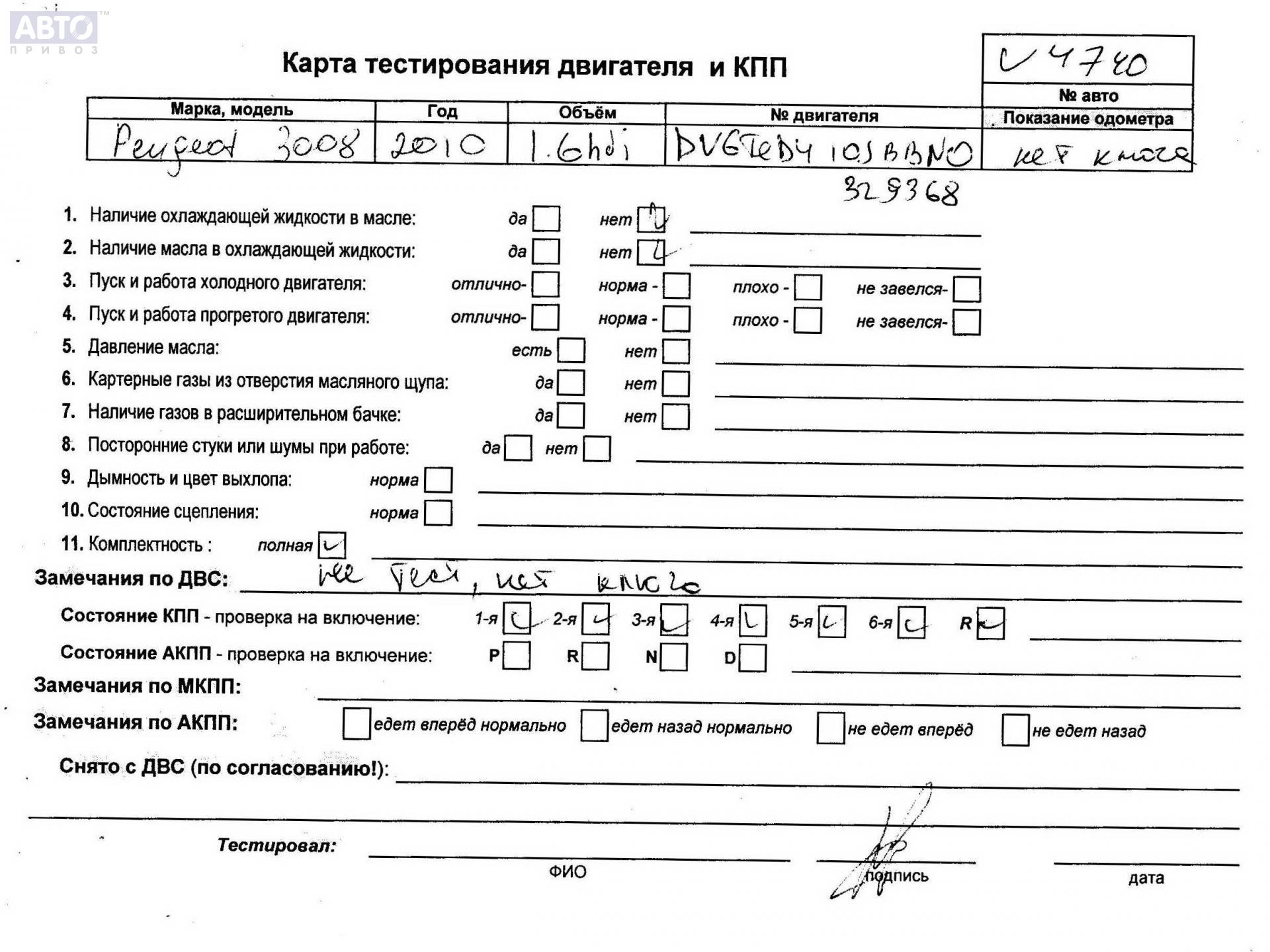 | Марка / Модель / Год: | Peugeot 3008 2010 |