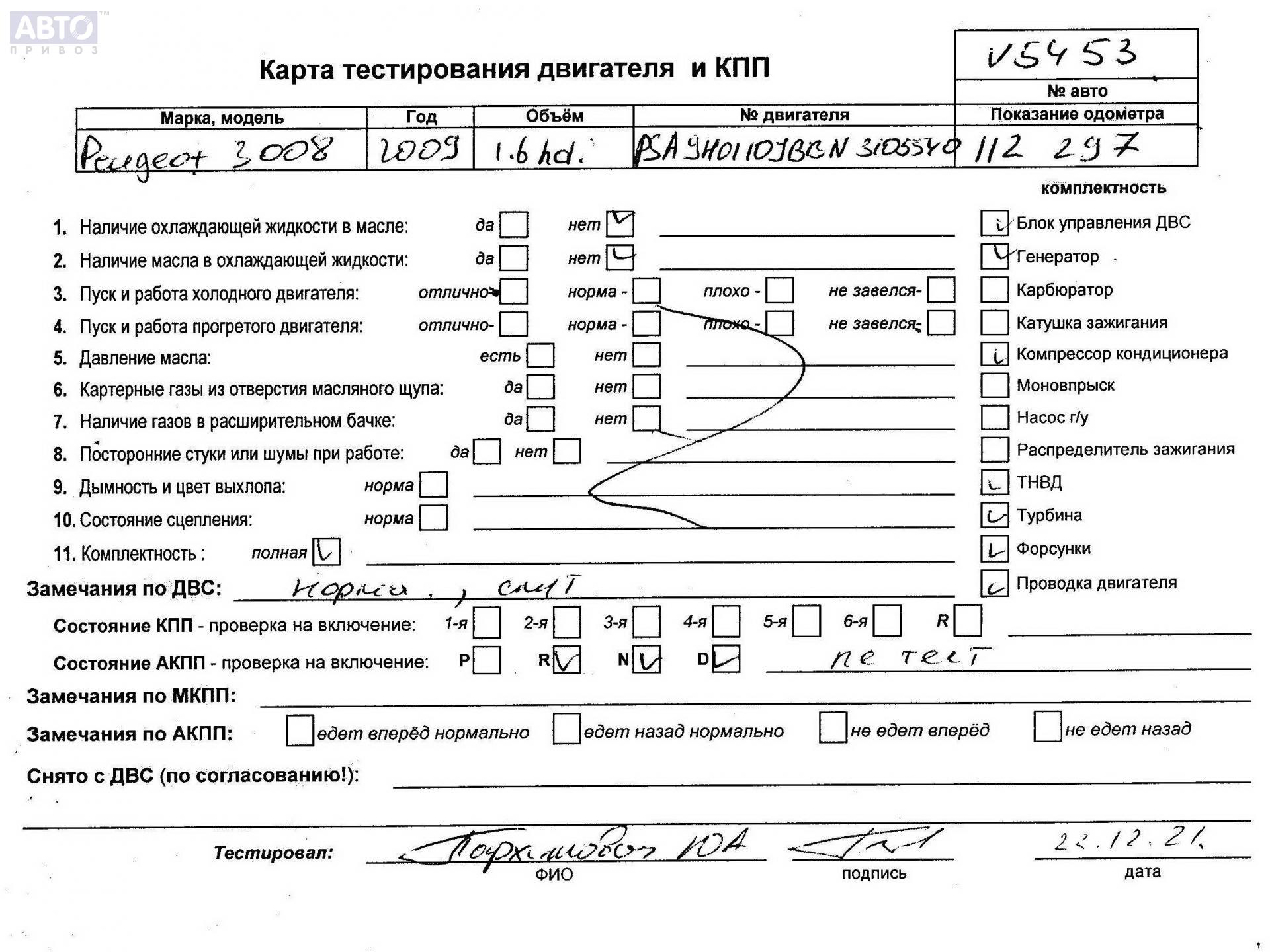 | Автомобиль / VIN: | V5453 VF30U9HZHAS022958 |