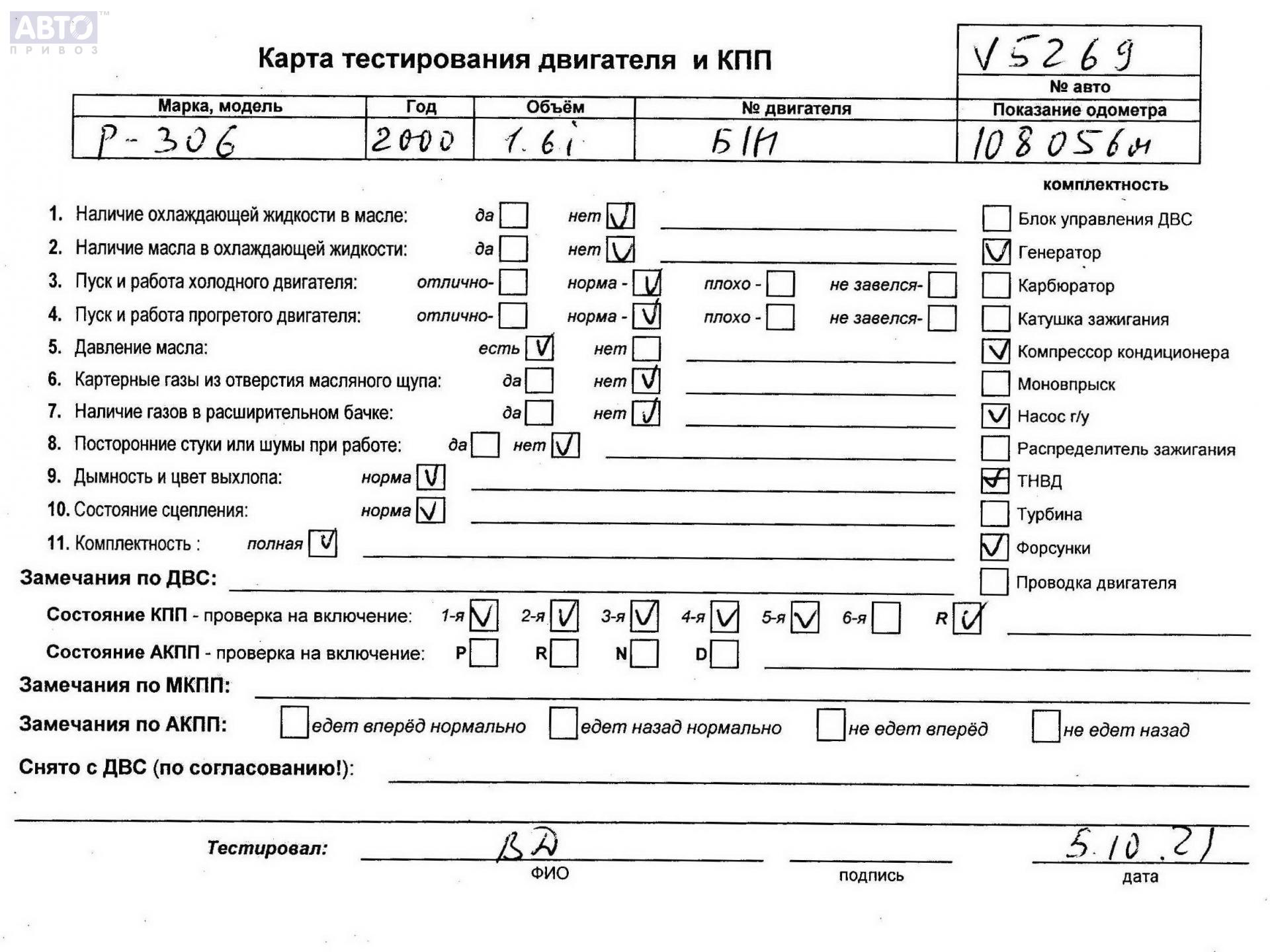 | Автомобиль / VIN: | V5269 VF37ANFTF33167013 |