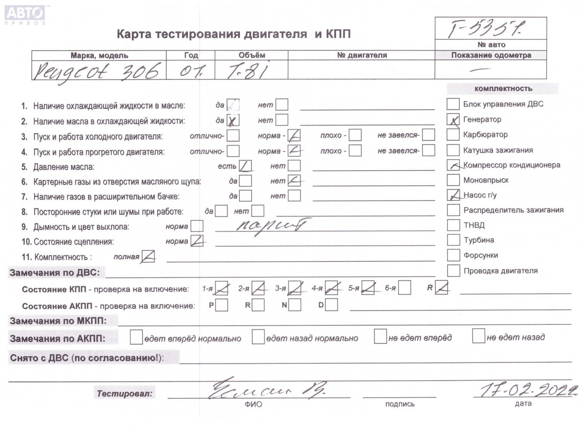 | Автомобиль / VIN: | T5351 VF37ELFYF33261877 |
