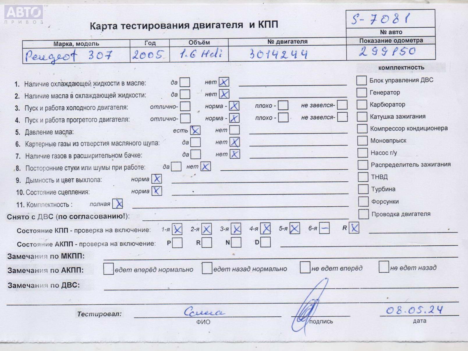 | Марка / Модель / Год: | Peugeot 307 2005 |