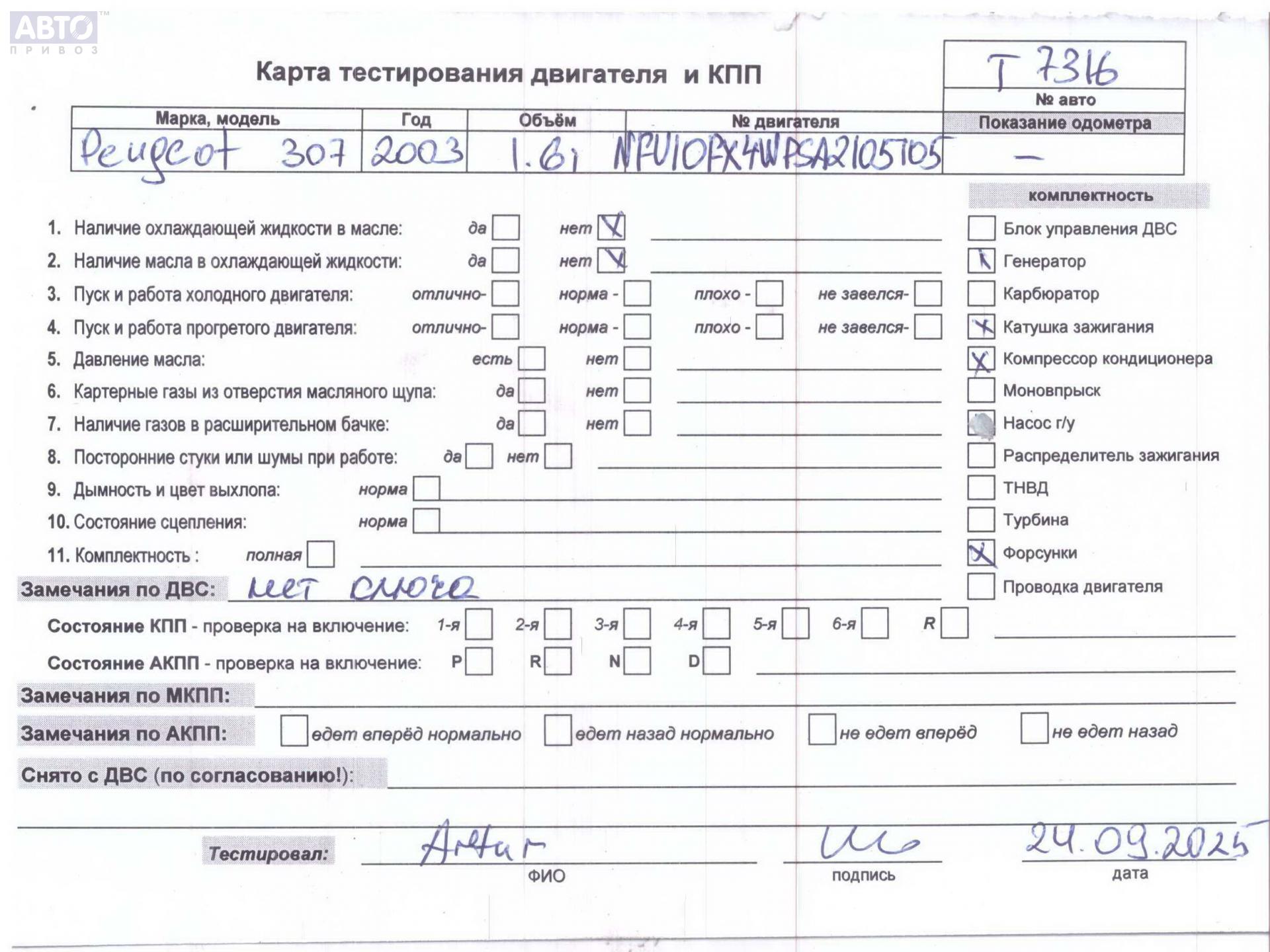 | Марка / Модель / Год: | Peugeot 307 2003 |