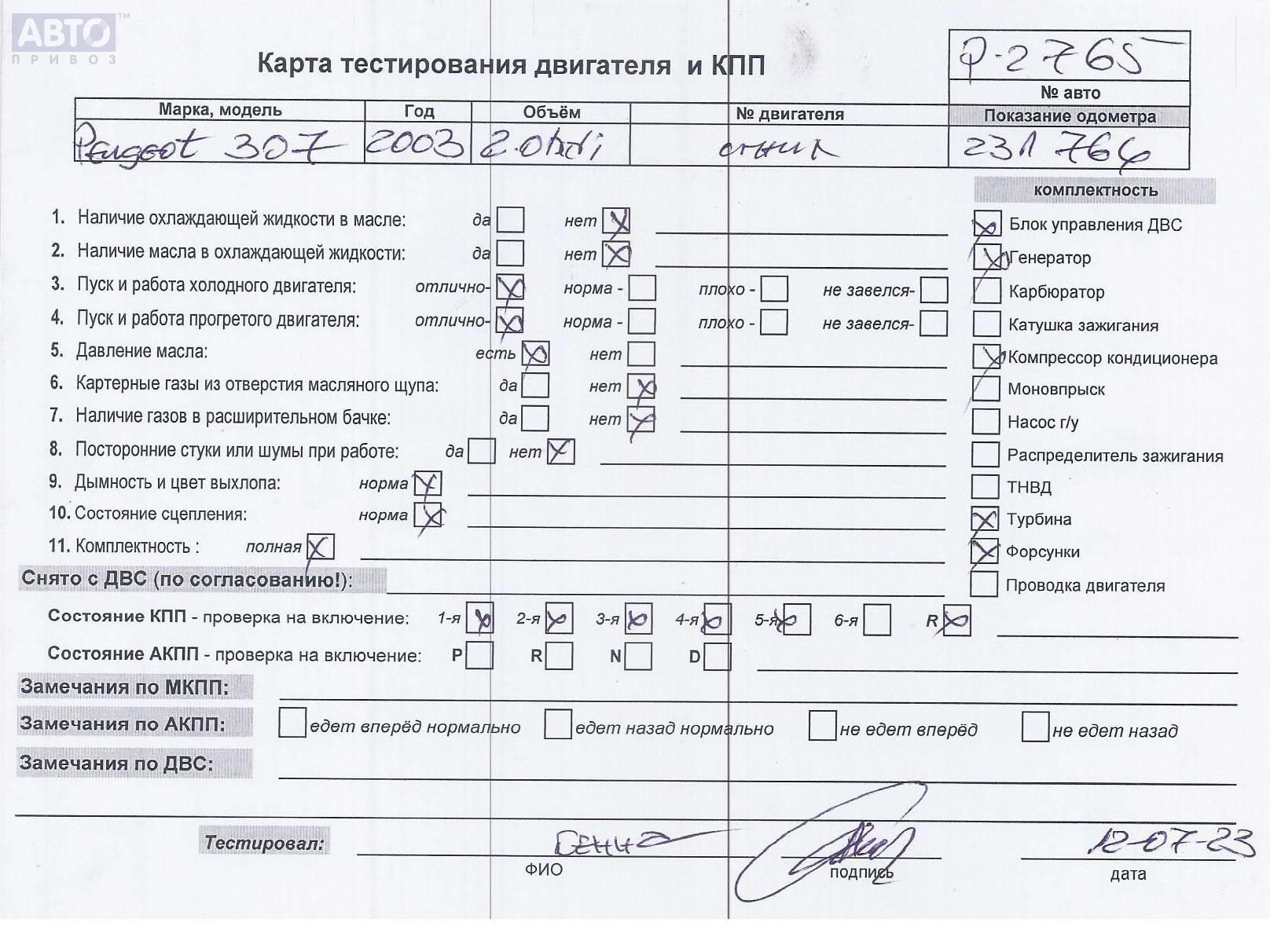 | Марка / Модель / Год: | Peugeot 307 2003 |