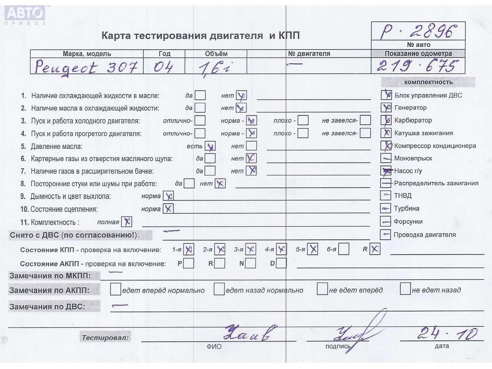 | Марка / Модель / Год: | Peugeot 307 2004 |