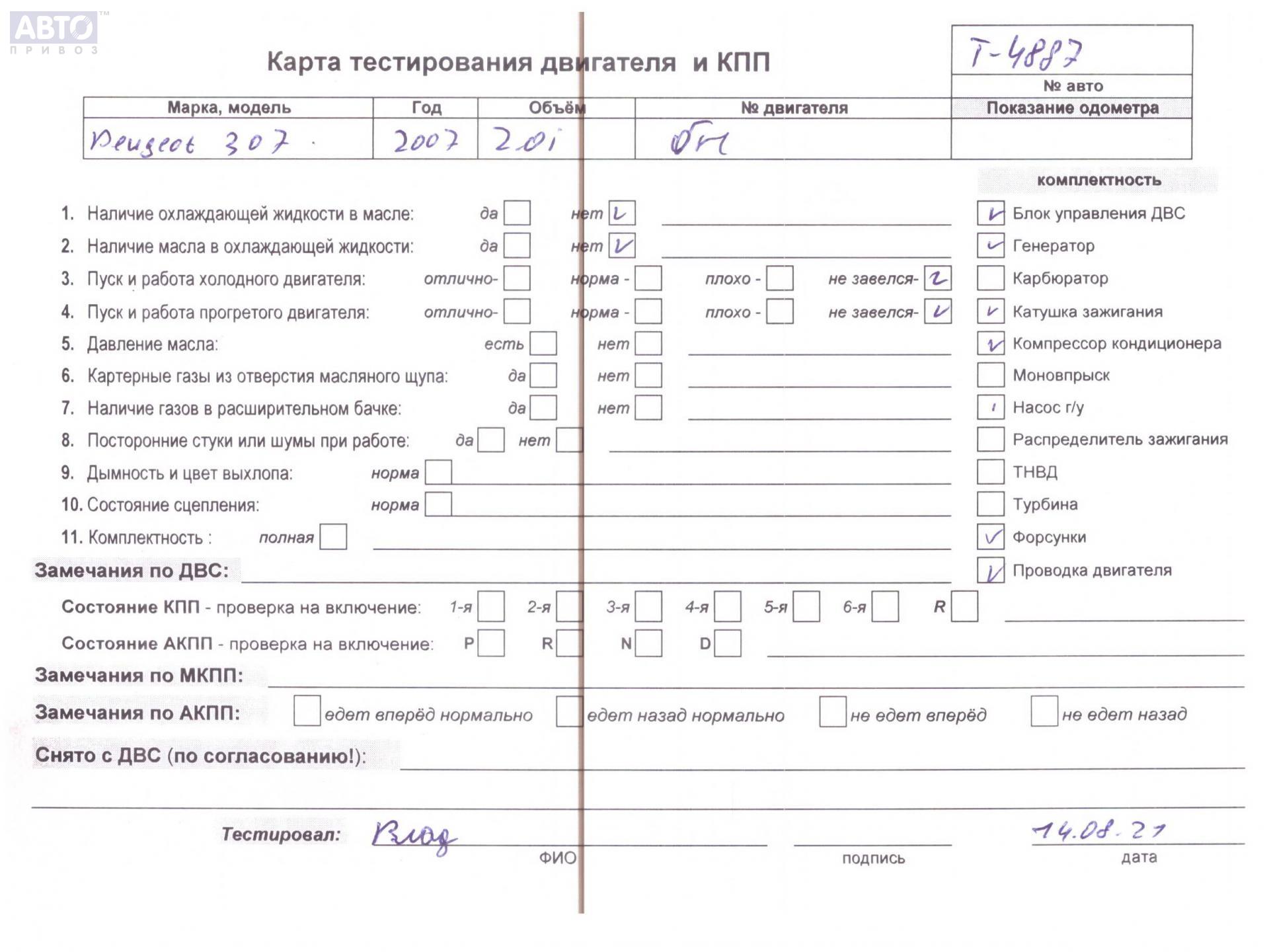 | Марка / Модель / Год: | Peugeot 307 2004 |