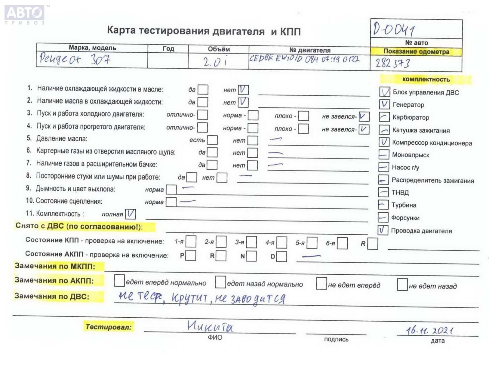 | Марка / Модель / Год: | Peugeot 307 2004 |