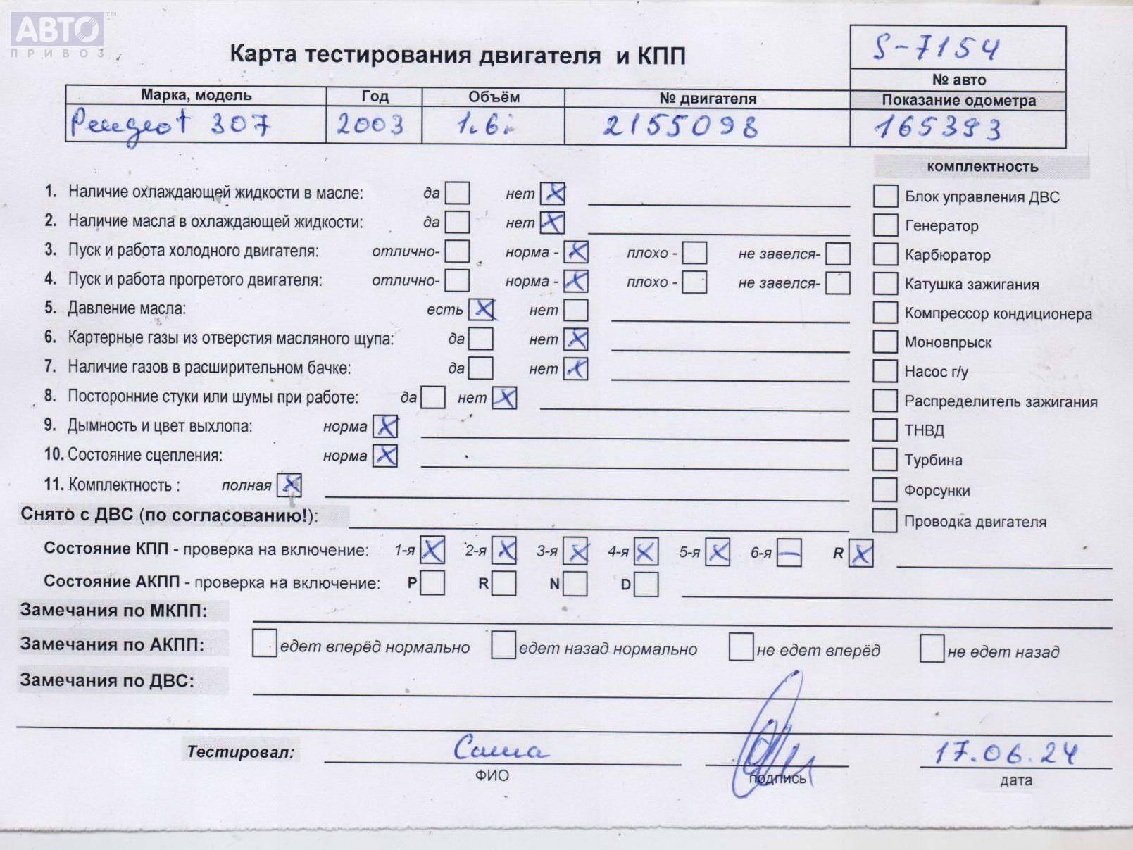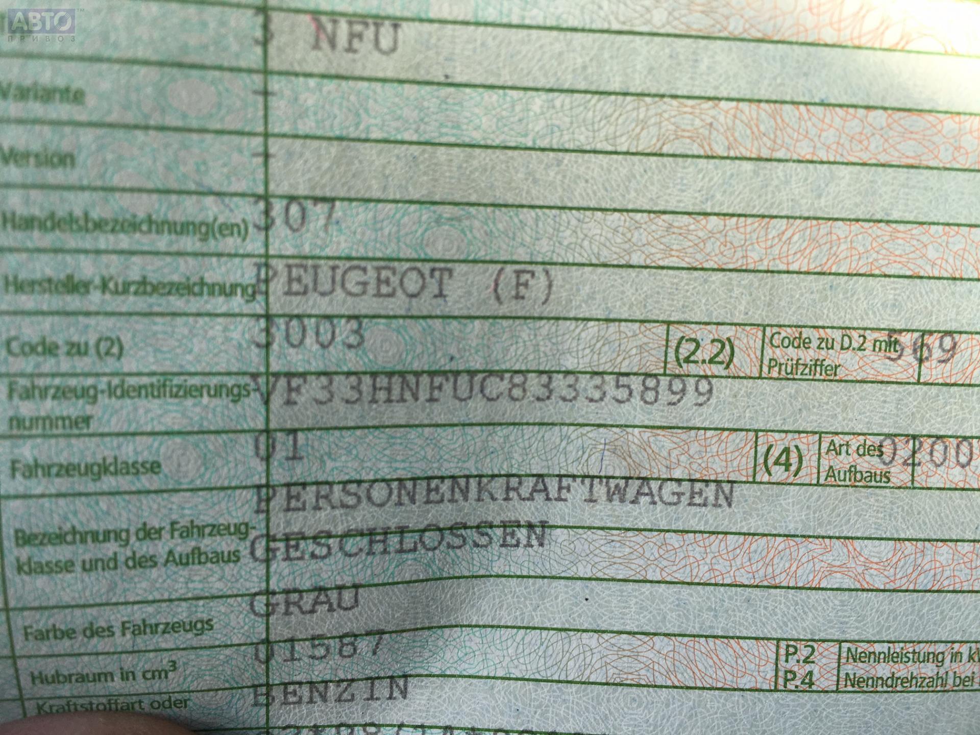 | Марка / Модель / Год: | Peugeot 307 2003 |