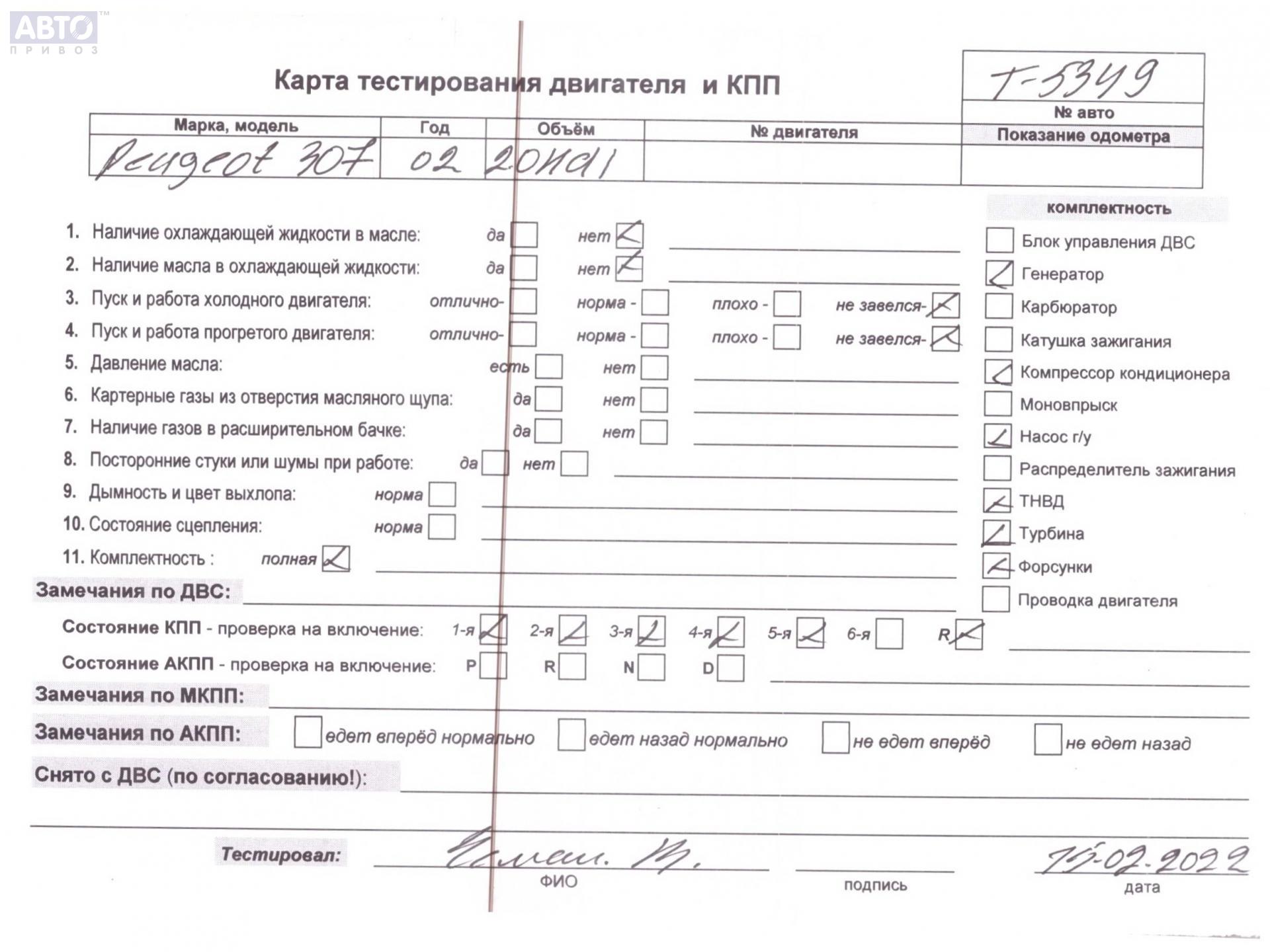 | Марка / Модель / Год: | Peugeot 307 2006 |