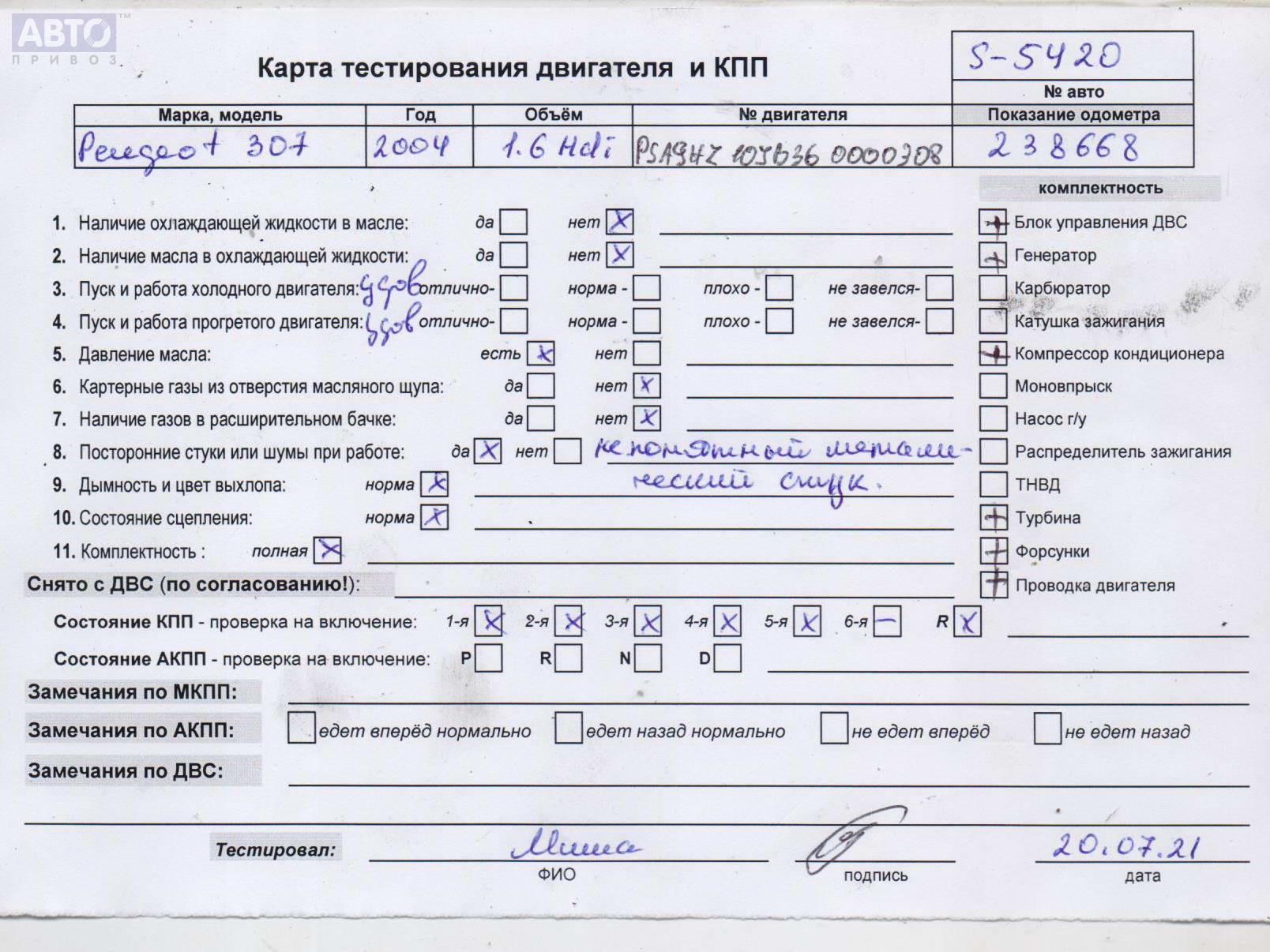 | Марка / Модель / Год: | Peugeot 307 2004 |