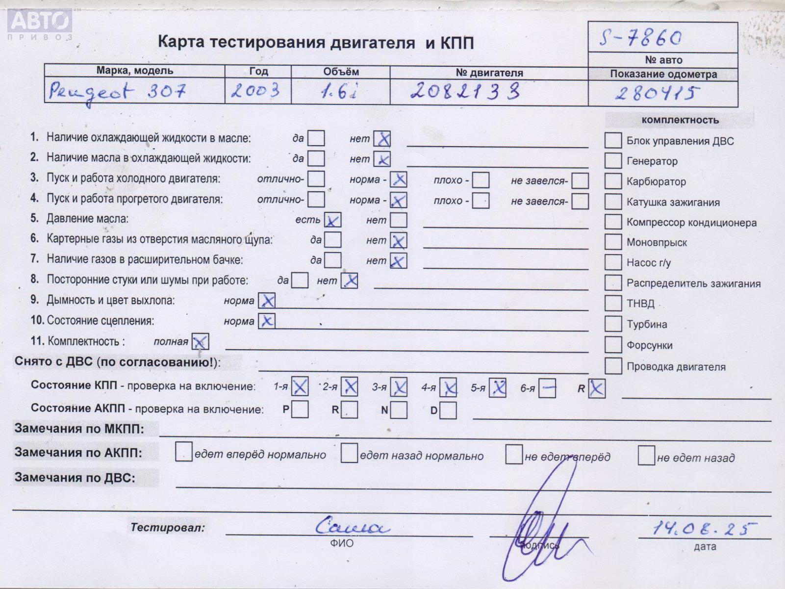 | Марка / Модель / Год: | Peugeot 307 2003 |