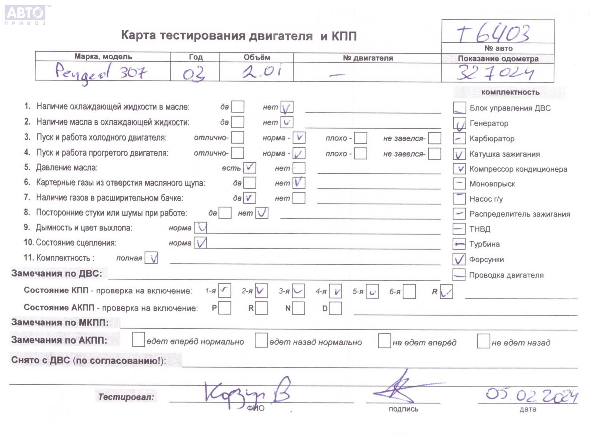 | Марка / Модель / Год: | Peugeot 307 2003 |