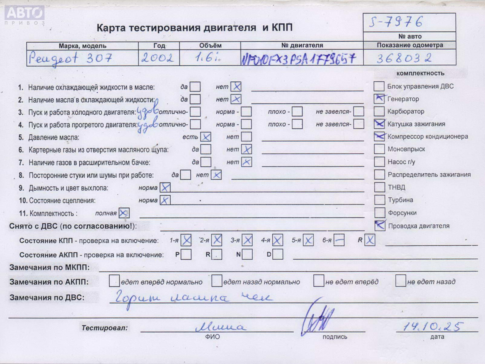 | Марка / Модель / Год: | Peugeot 307 2002 |