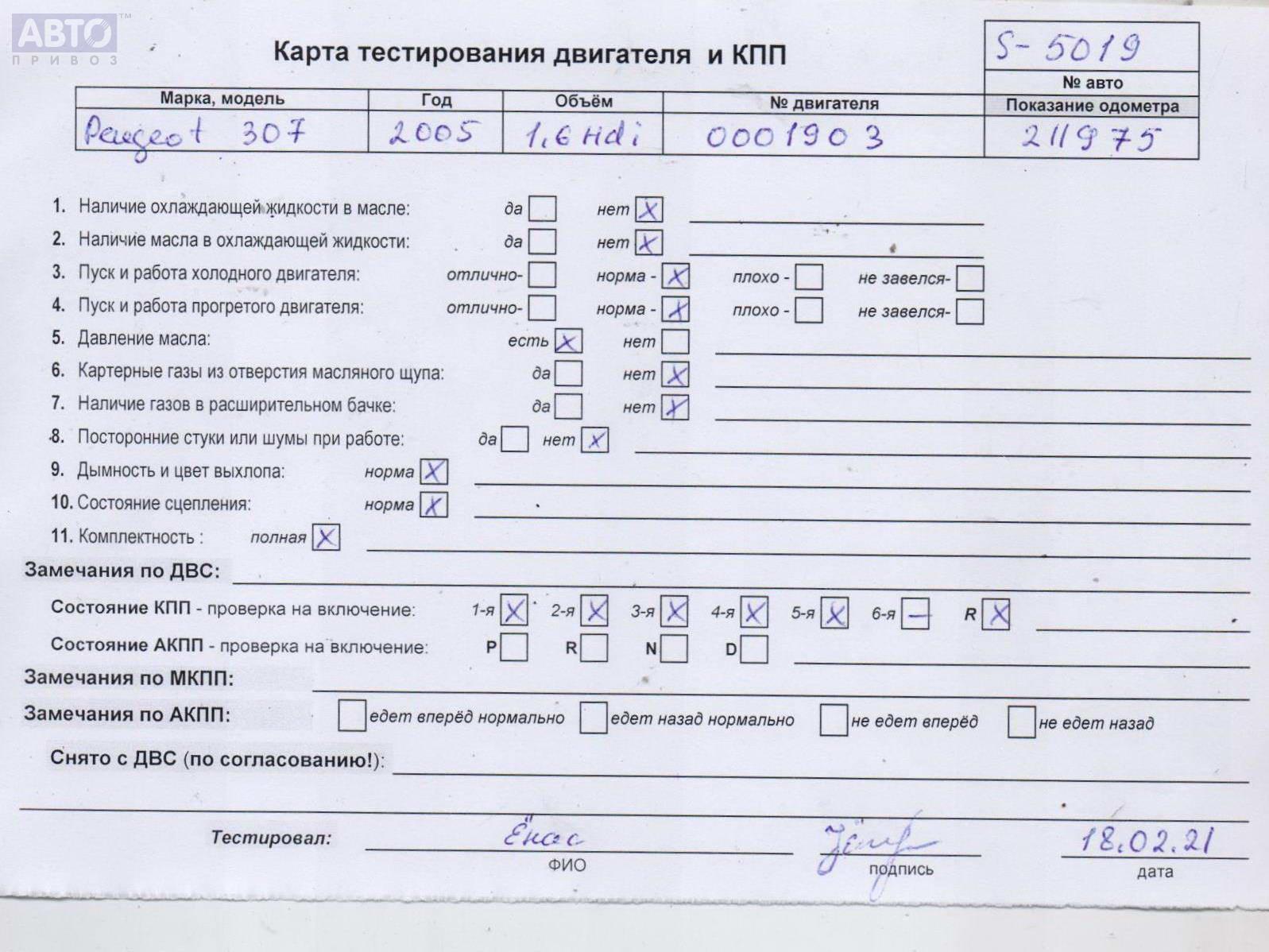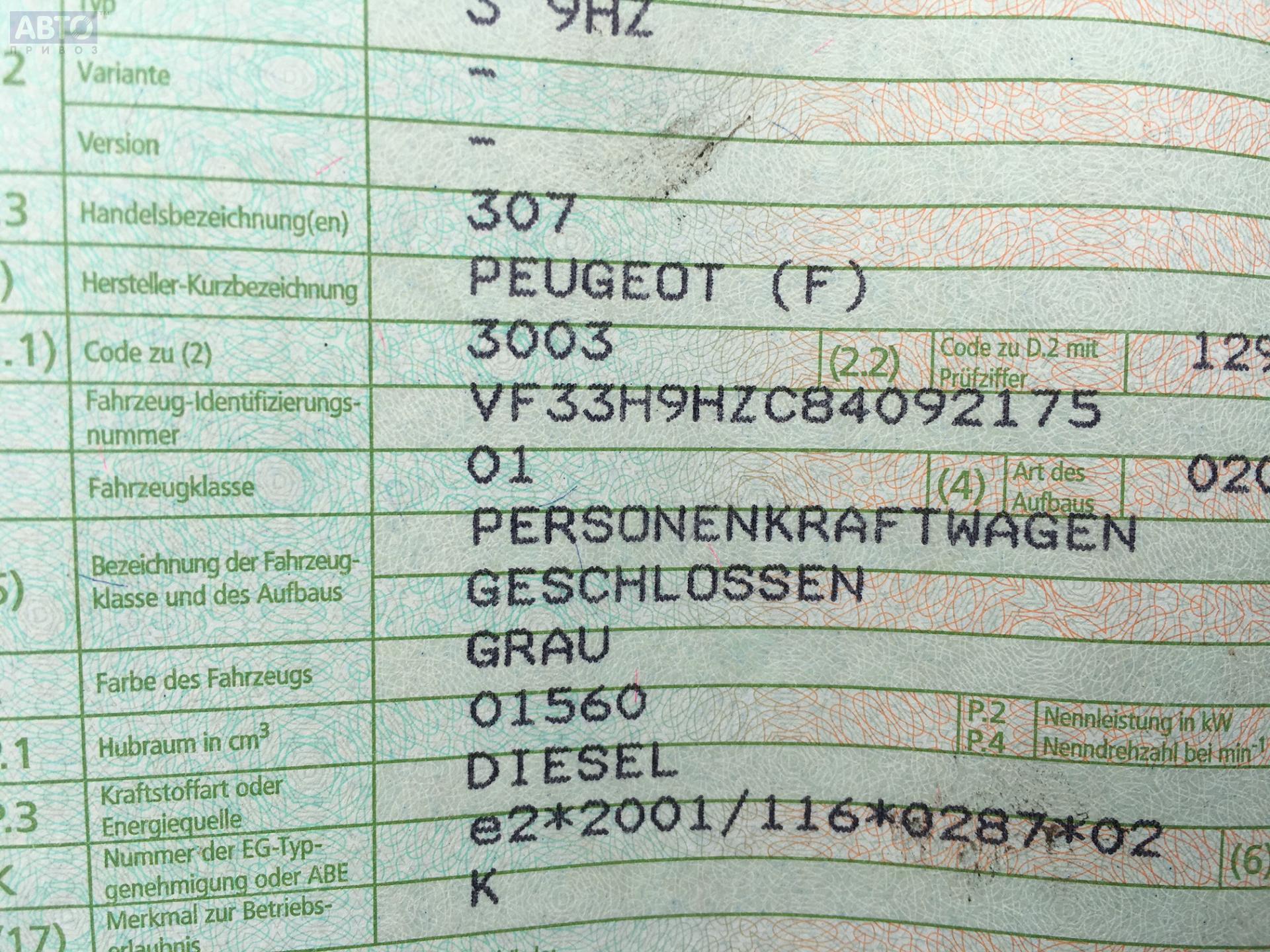 | Марка / Модель / Год: | Peugeot 307 2005 |
