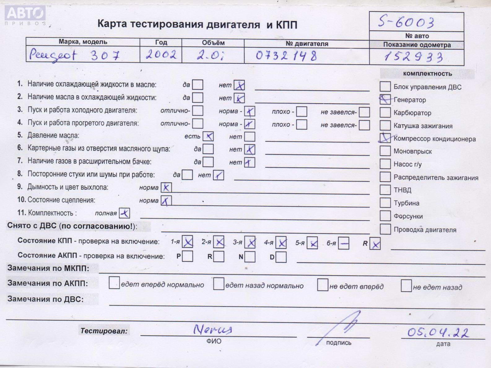 | Марка / Модель / Год: | Peugeot 307 2002 |