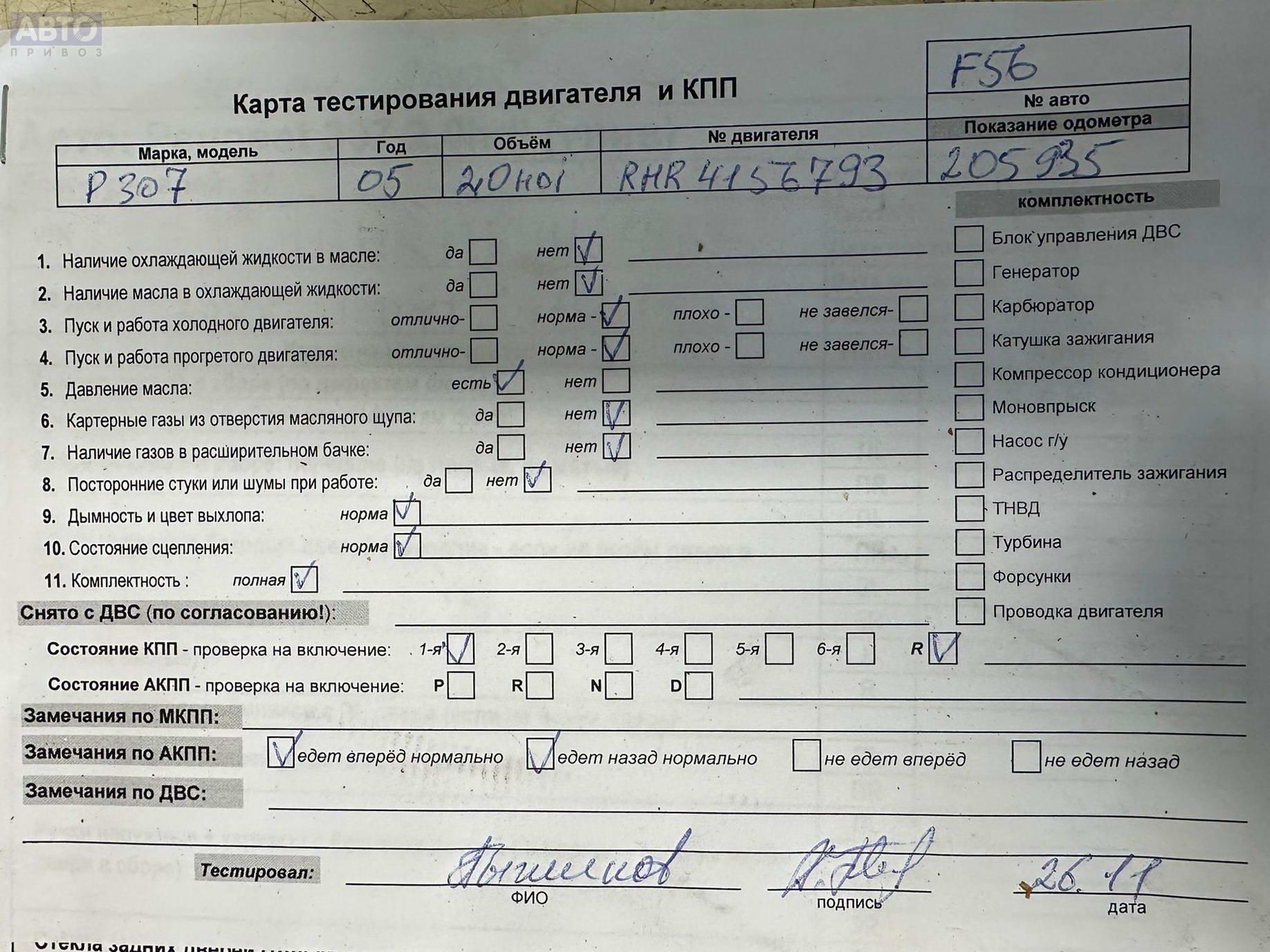 | Марка / Модель / Год: | Peugeot 307 2005 |