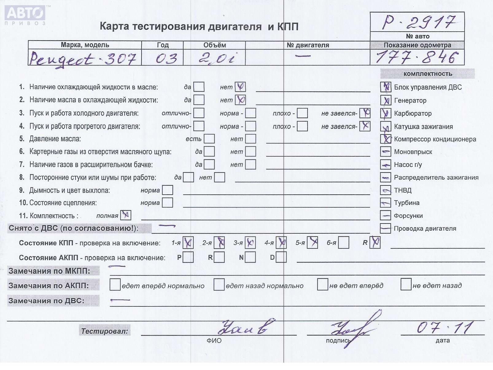 | Марка / Модель / Год: | Peugeot 307 2003 |