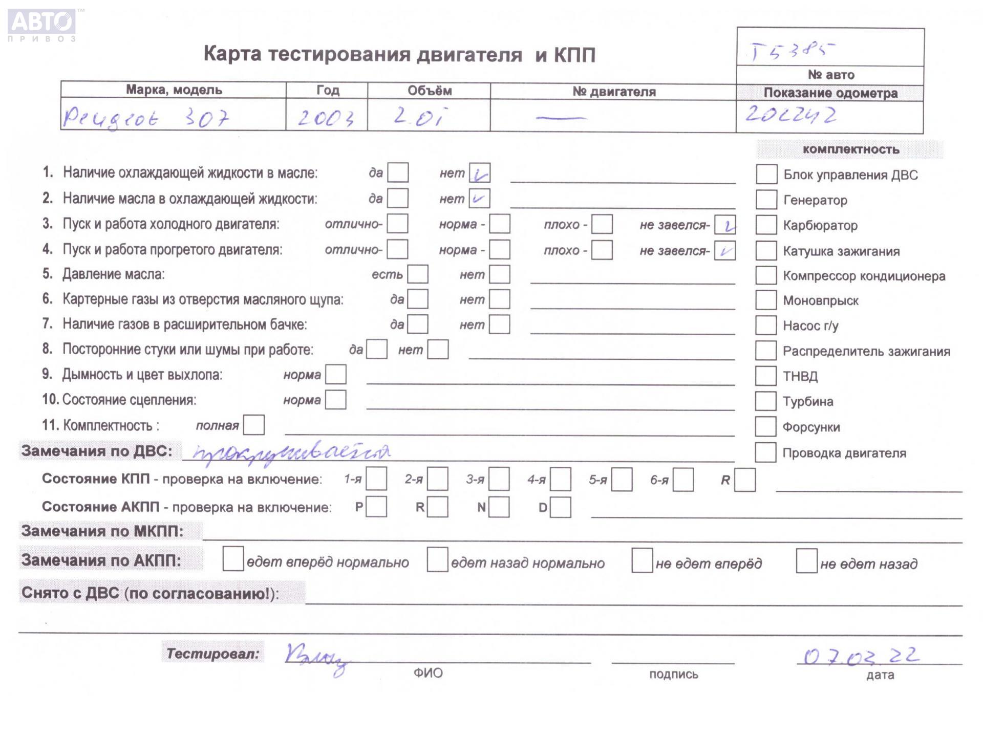 | Марка / Модель / Год: | Peugeot 307 2003 |