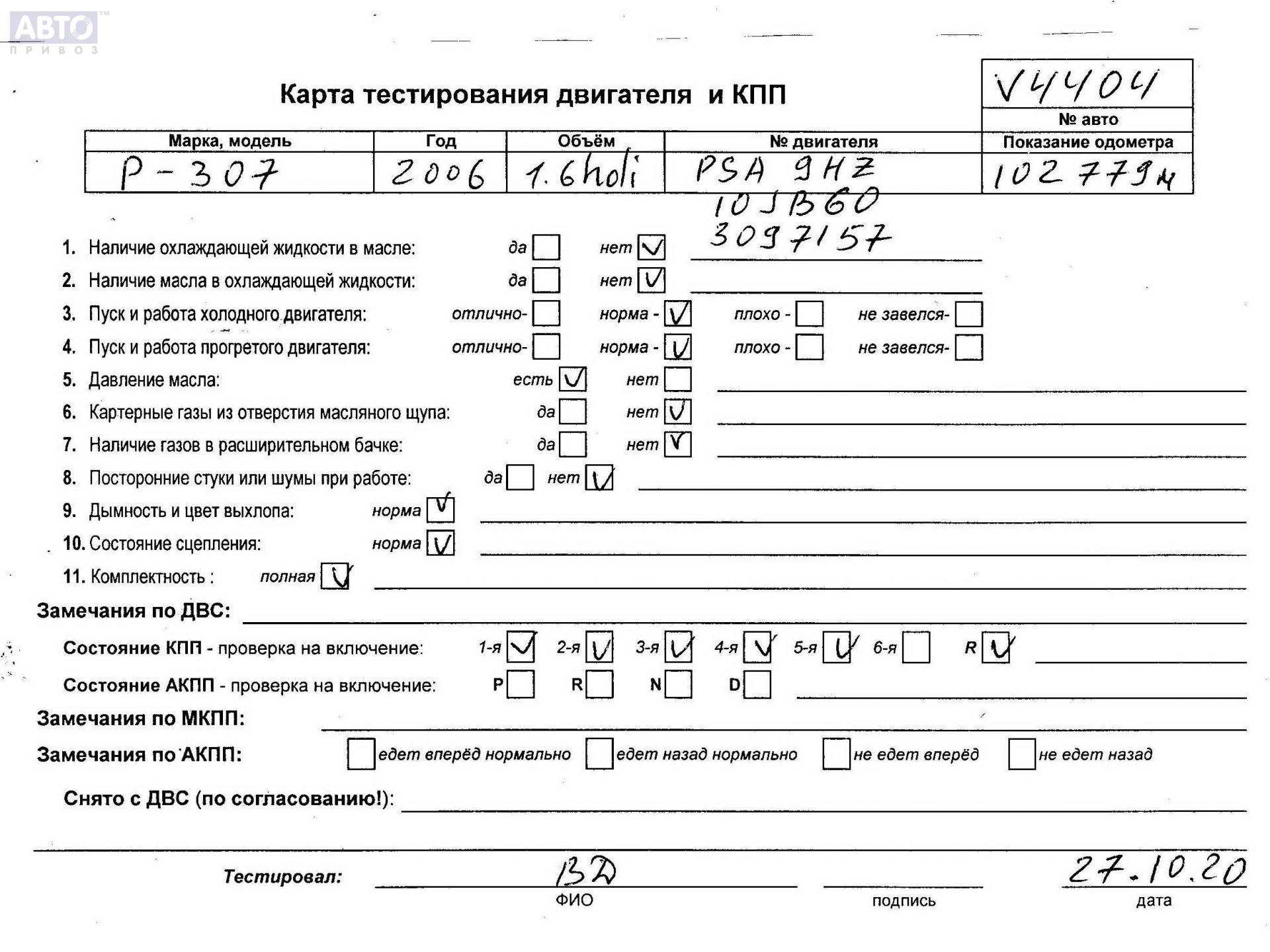 | Марка / Модель / Год: | Peugeot 307 2006 |