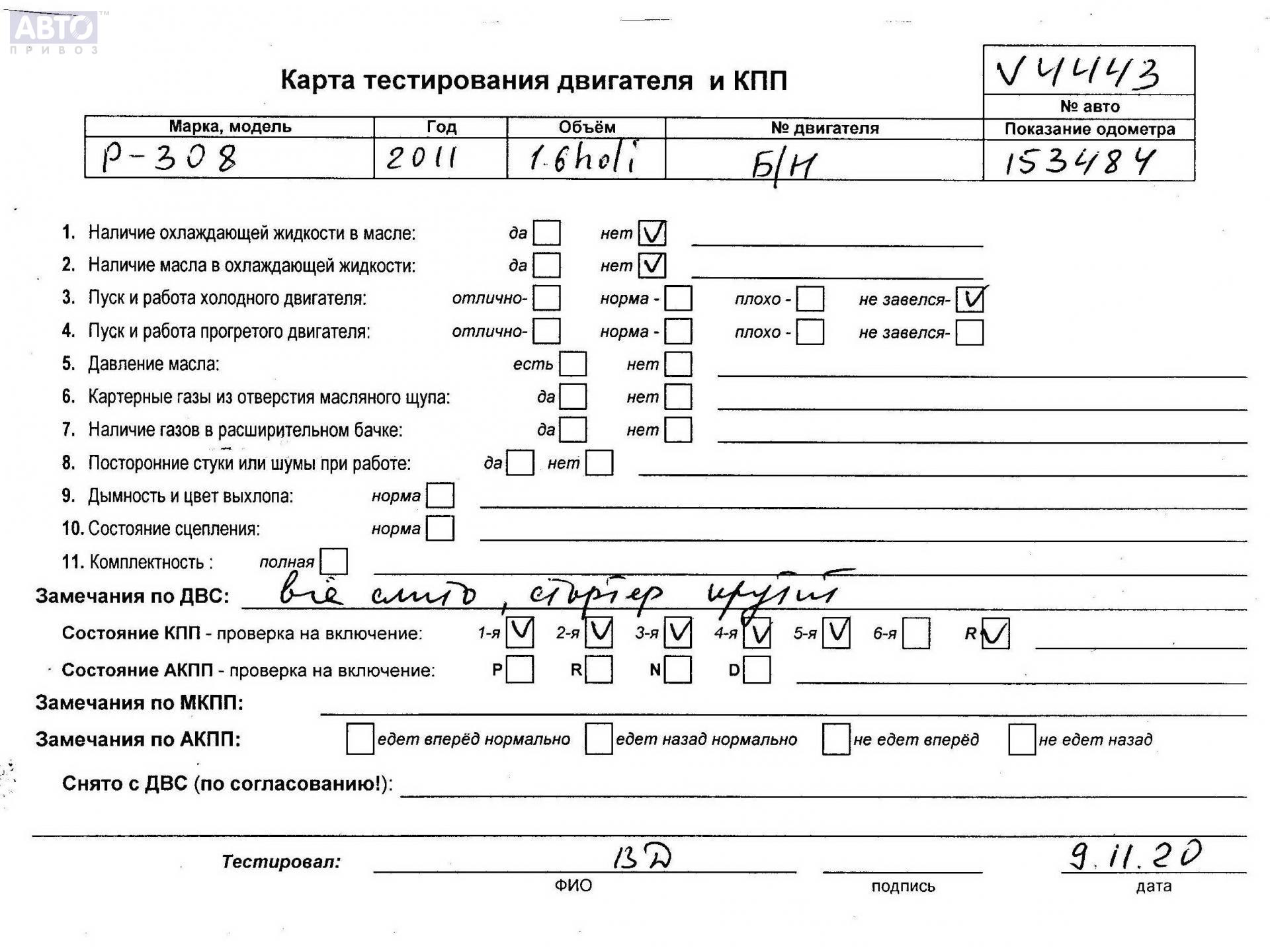 | Автомобиль / VIN: | V4443 VF34C9HP0BY107371 |