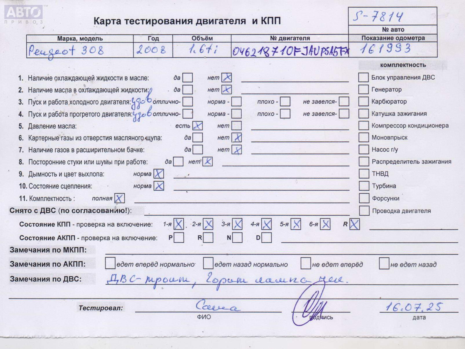 | Автомобиль / VIN: | S7814 VF34H5FXH9S005822 |