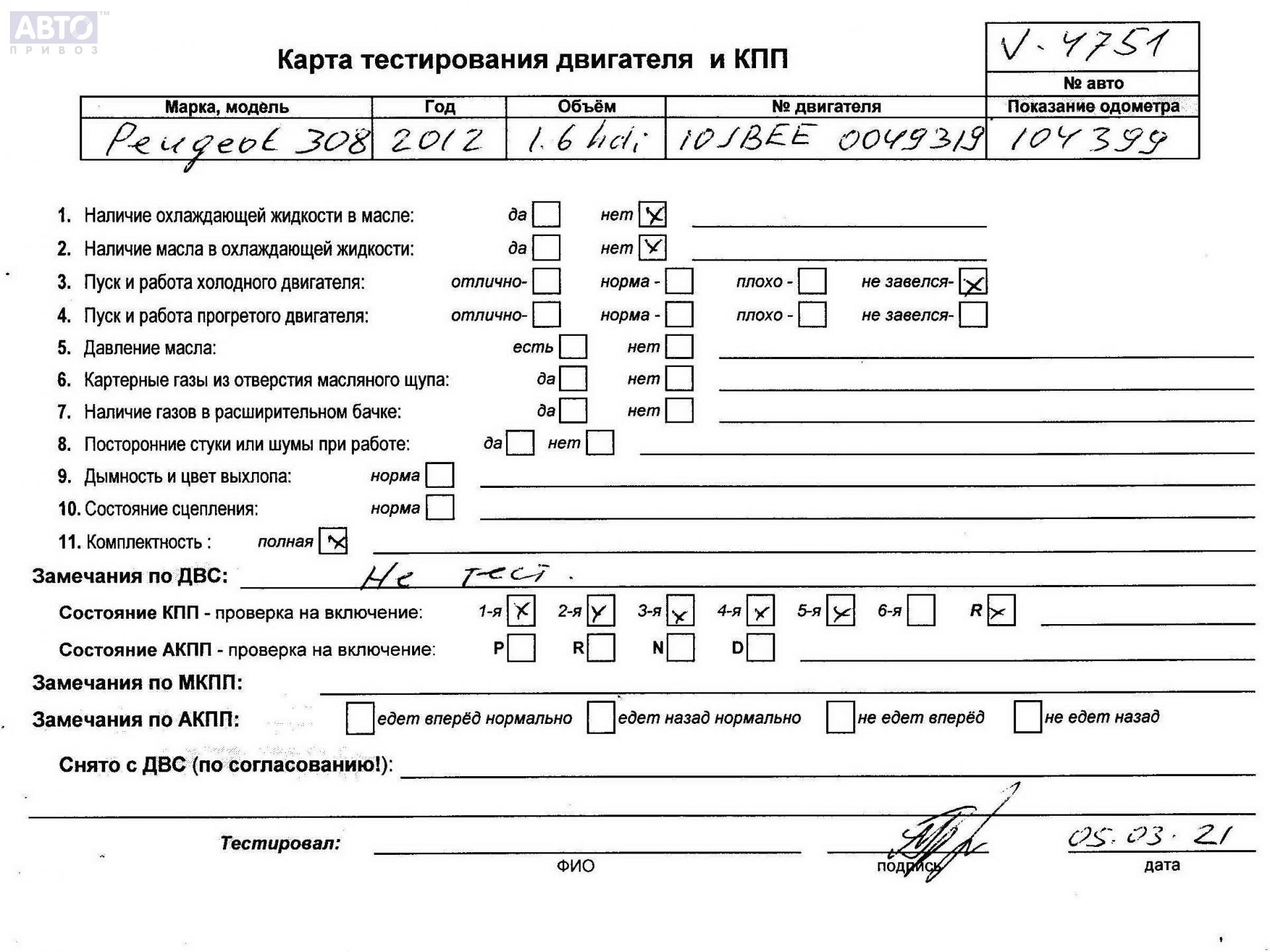 | Автомобиль / VIN: | V4751 VF34C9HP0BY109786 |
