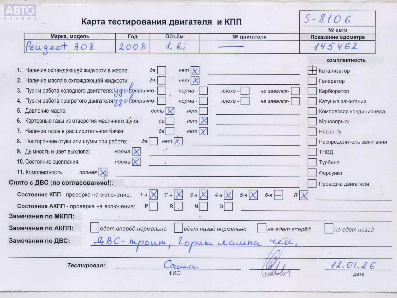 | Марка / Модель / Год: | Peugeot 308 T7 (2007-2013) 2008 |